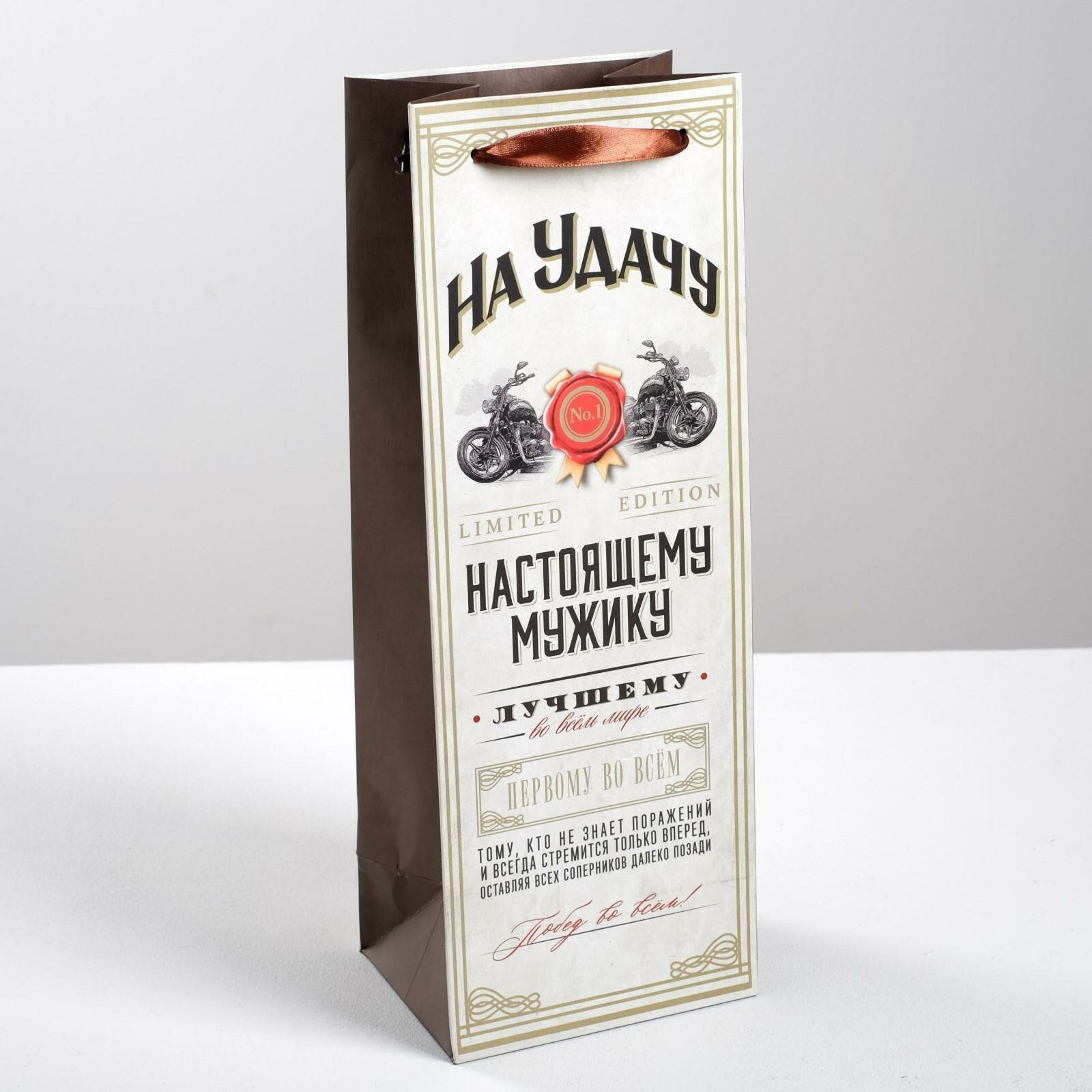 Пакет под бутылку "Настоящему мужику", 36 х 13 х 10 см информация: