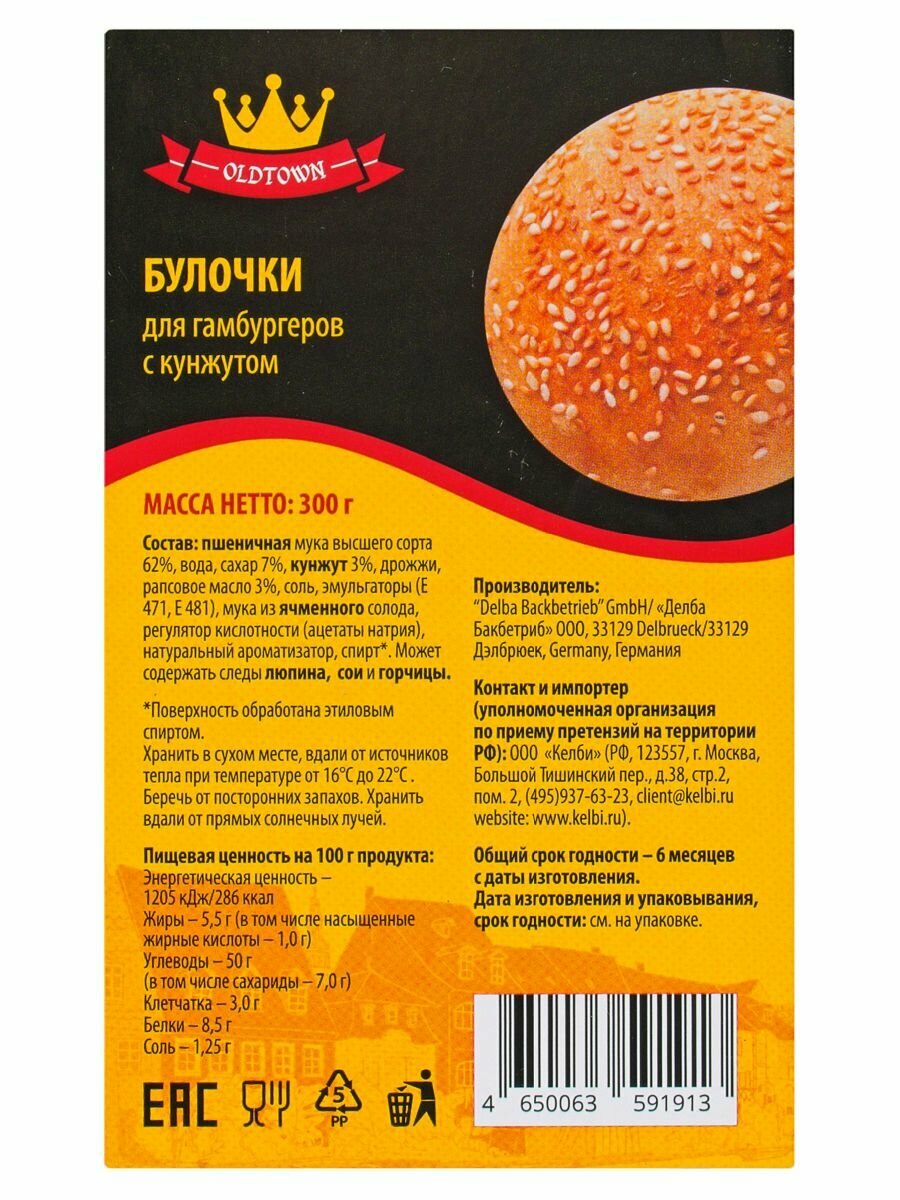 Булочки для гамбургеров с кунжутом, 300 гр, OldTown информация: