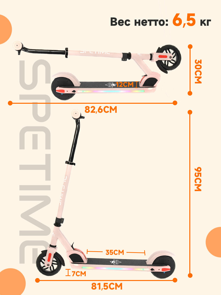 Электросамокат детский Spetime E10 Pink / Электрический самокат для детей и подростков от 8 до 14 лет 17 168 ₽