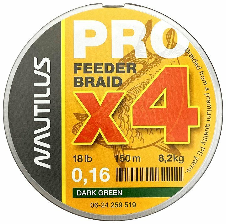 Шнур Nautilus Pro Feeder Braid 150м 0,16мм 8,2кг 18lb dark green информация: