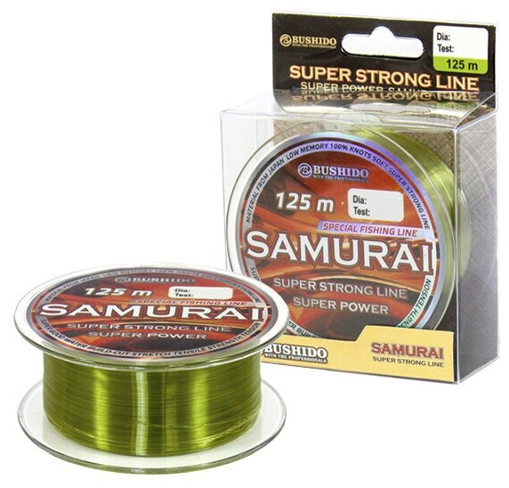 Отзывы на Леска рыболовная BUSHIDO SAMURAI super strong line (125м); (d - 0,25мм); (тест - 8,3кг)