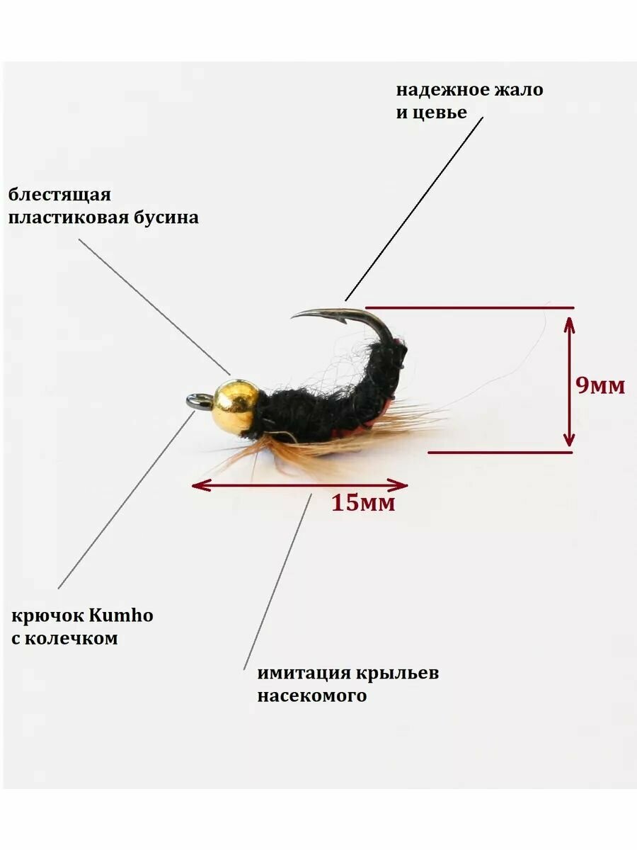 Мушки рыболовные - нимфы желтые 20шт + кейс информация: