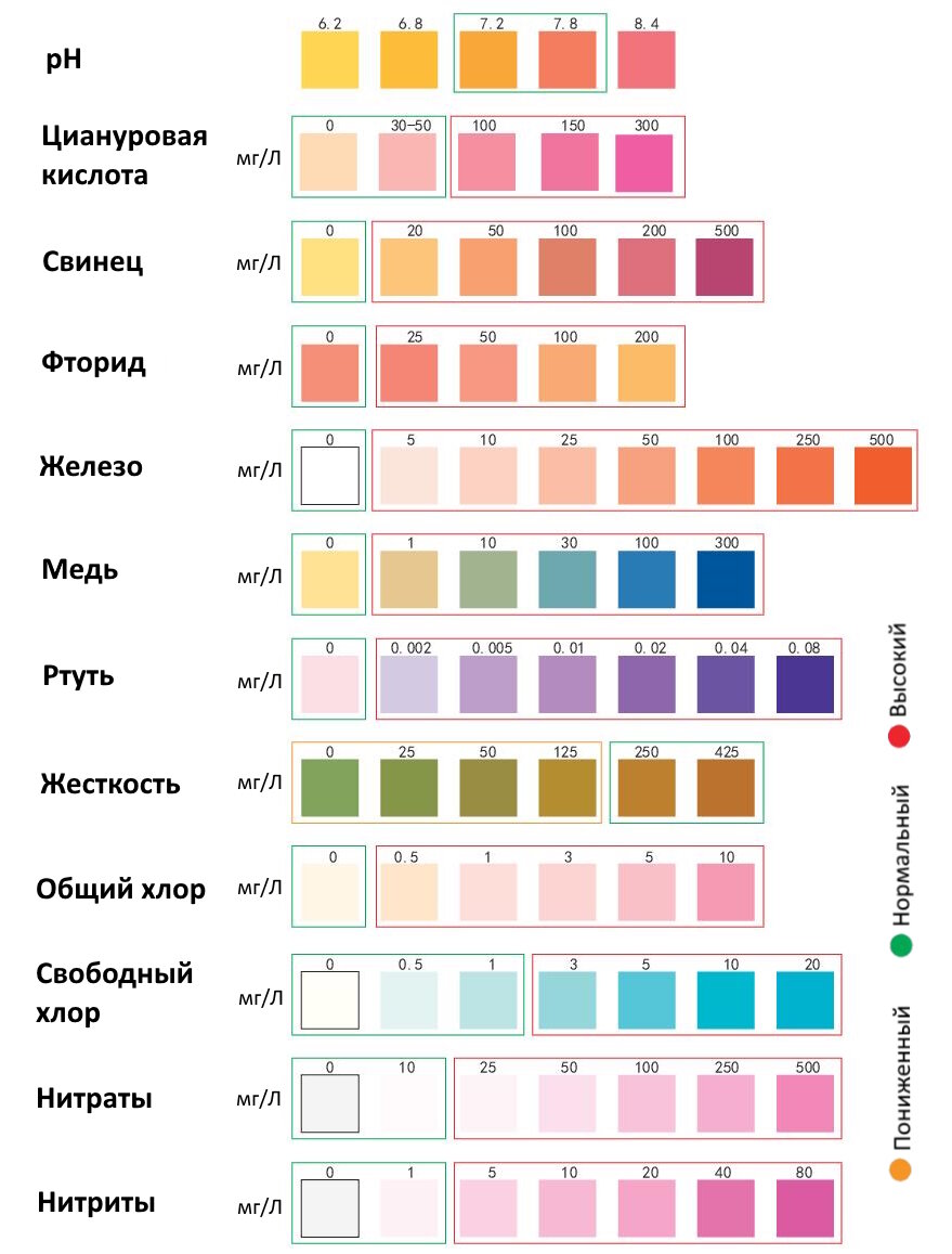 Отзывы на Экспресс-тест тестер 12 в 1 на определение качества воды ( циануровая кислота ph ртуть свинец железо жесткость нитраты нитриты хлор и тд.)