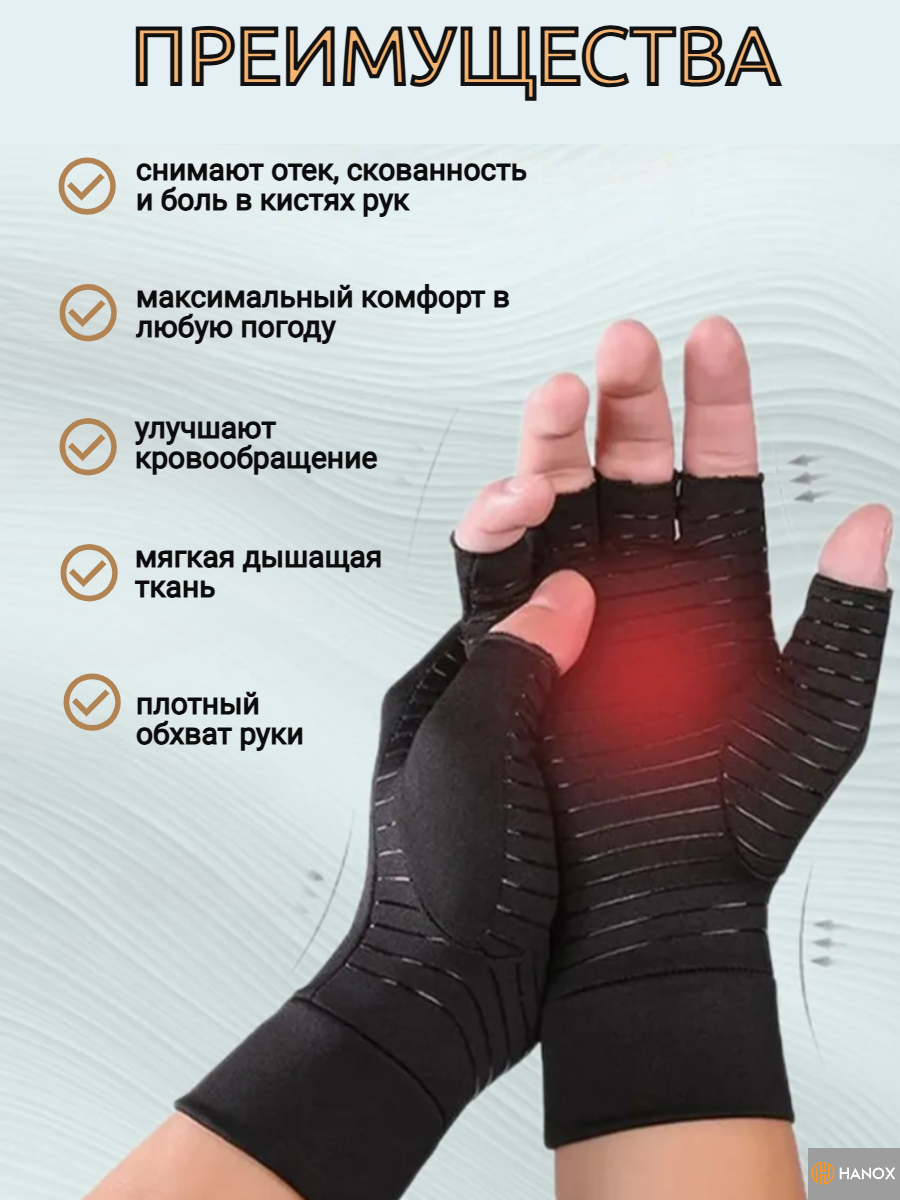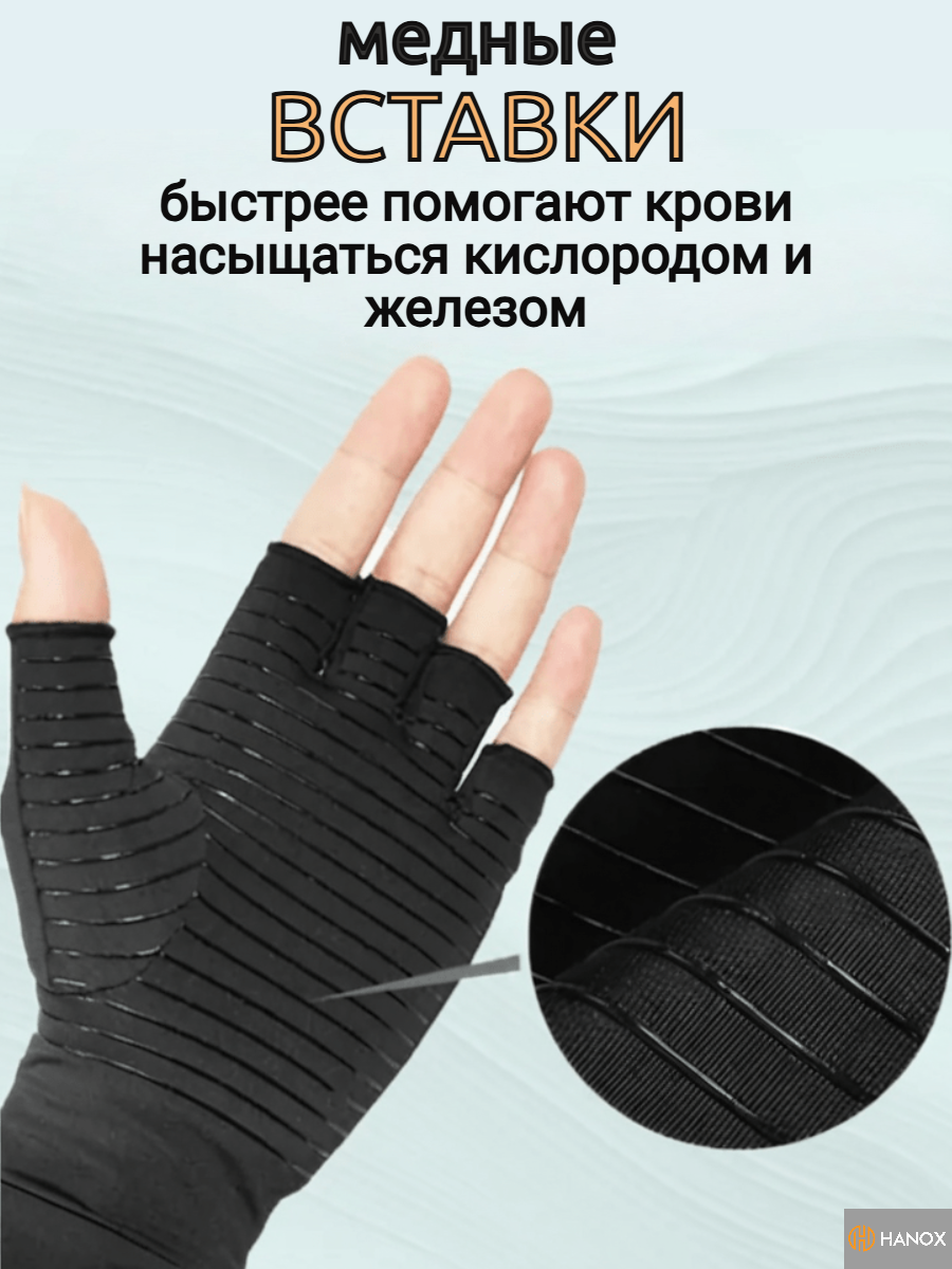 Отзывы на Компрессионные перчатки HANOX, с ионами меди, размер S, черные, 2 шт