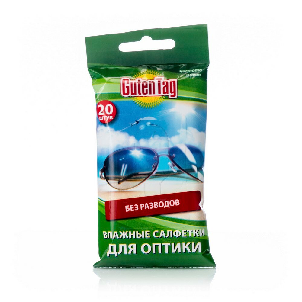 10 цен на Влажные салфетки для оптики Guten Tag 20шт, голубые, без разводов