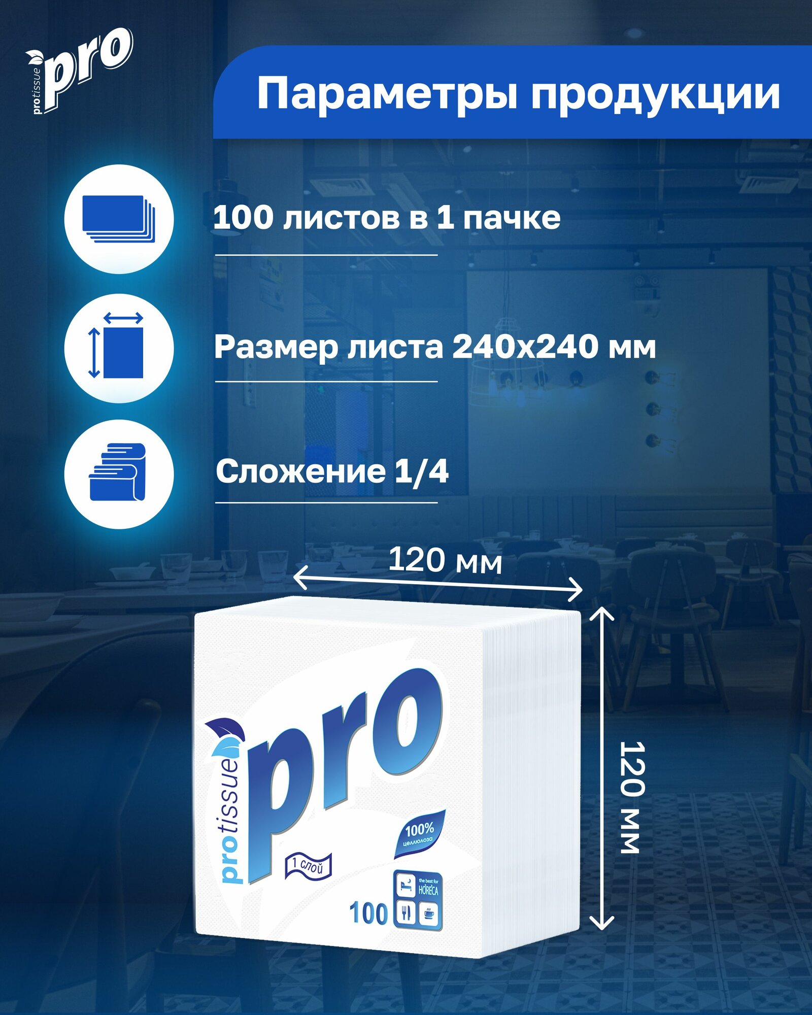 Салфетки бумажные PROtissue С184, 24x24 см,1 слой, 100 листов, 40 пачек информация: