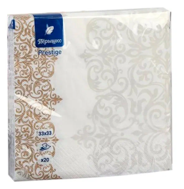 10 цен на Салфетки Перышко, Prestige Версаль, 20 шт, 3 слоя, 33х33 см, 5413