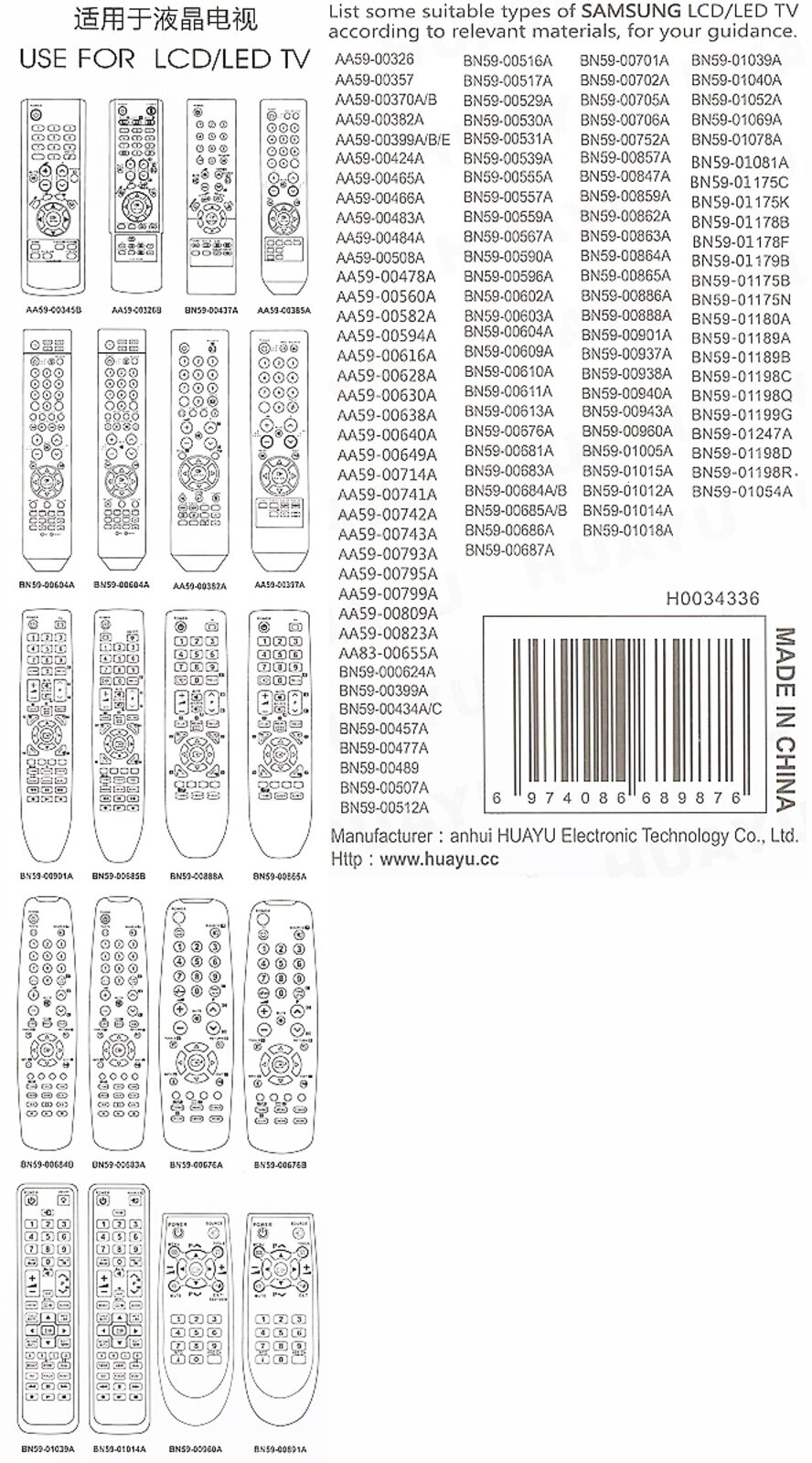 Пульт Huayu для Samsung RM-62F универсальные информация: