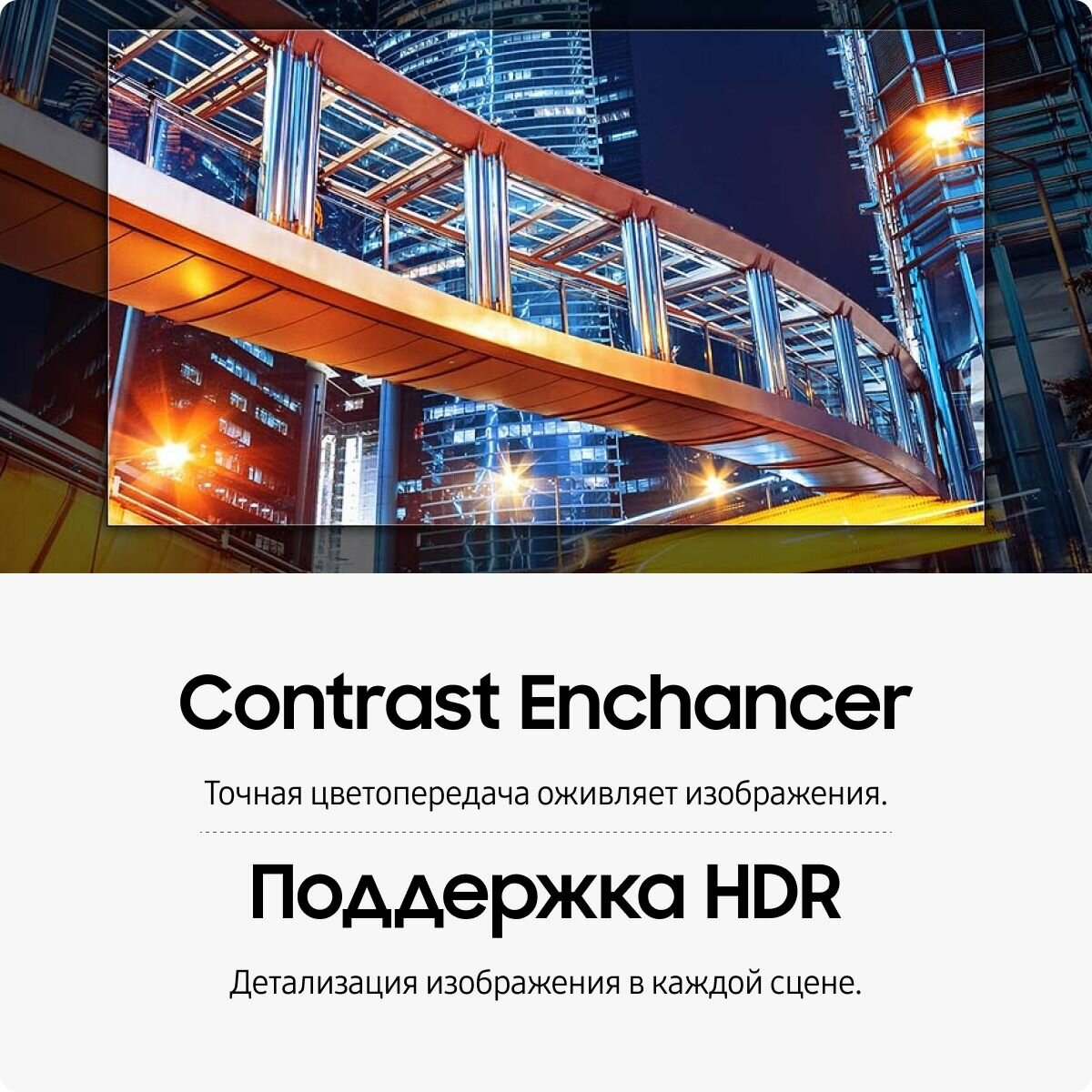 | Дополнительная информация | процессор Crystal 4K тип затемнения UHD Dimming; игровой режим ALLM; поддержка Wireless DeX; ОС Tizen 6.0; Q-Symphony; Tap View; Auto Motion Plus, Motion Xcelerator; режим кино; режим интерьер; поддержка SmartThings; поддержка приложения «Интернет вещей»; галерея; звук ТВ в мобильное устройство; |