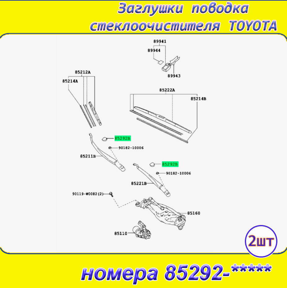 Toyota колпачки 2шт заглушка поводка стеклоочистителя "дворников" Toyota 85292-***** информация: