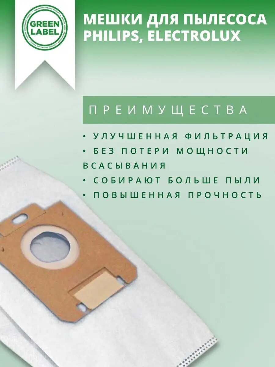 10 цен на Мешки Green Label XXL Pack, для пылесосов Electrolux, Philips, Zanussi, белые, 8шт.