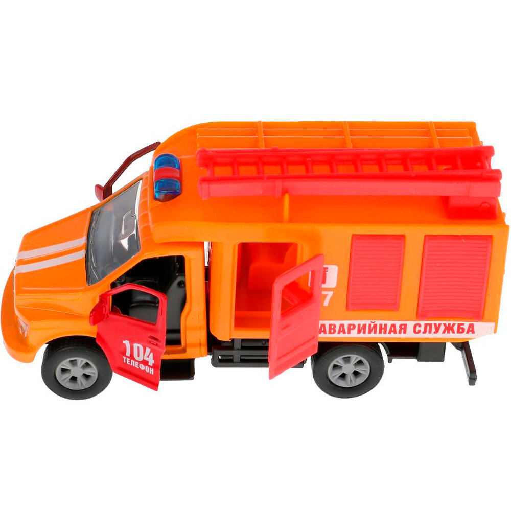 Машинка детская Газель Некст Аварийная служба 14.5 см, Технопарк, оранжевая, отрываются двери, металлическая кабина