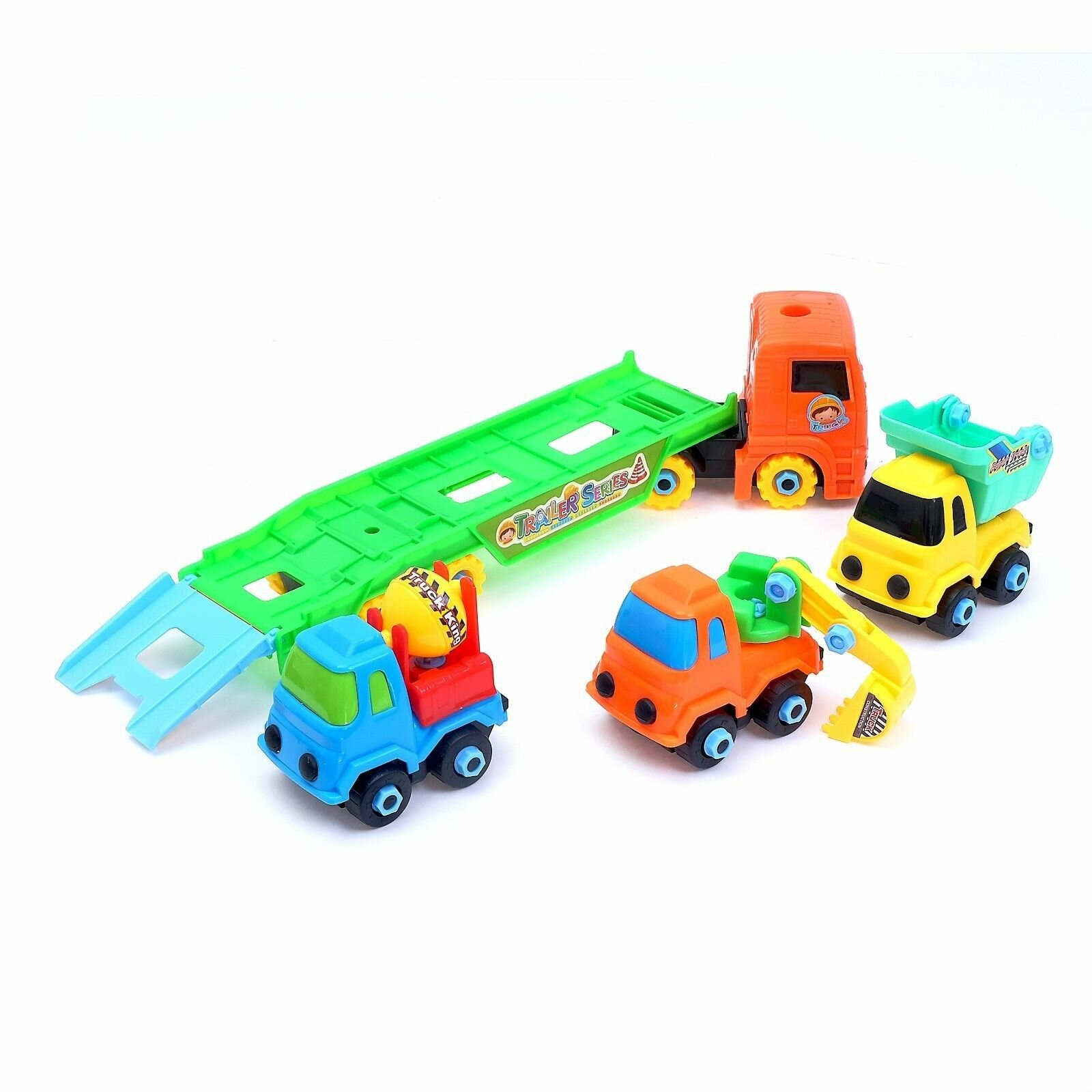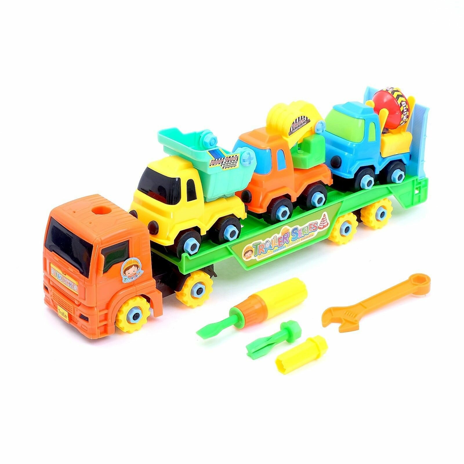 Отзывы на Конструктор пластиковый винтовой "Автовоз" с 3 машинками, сборная модель, игровой набор с инструментами