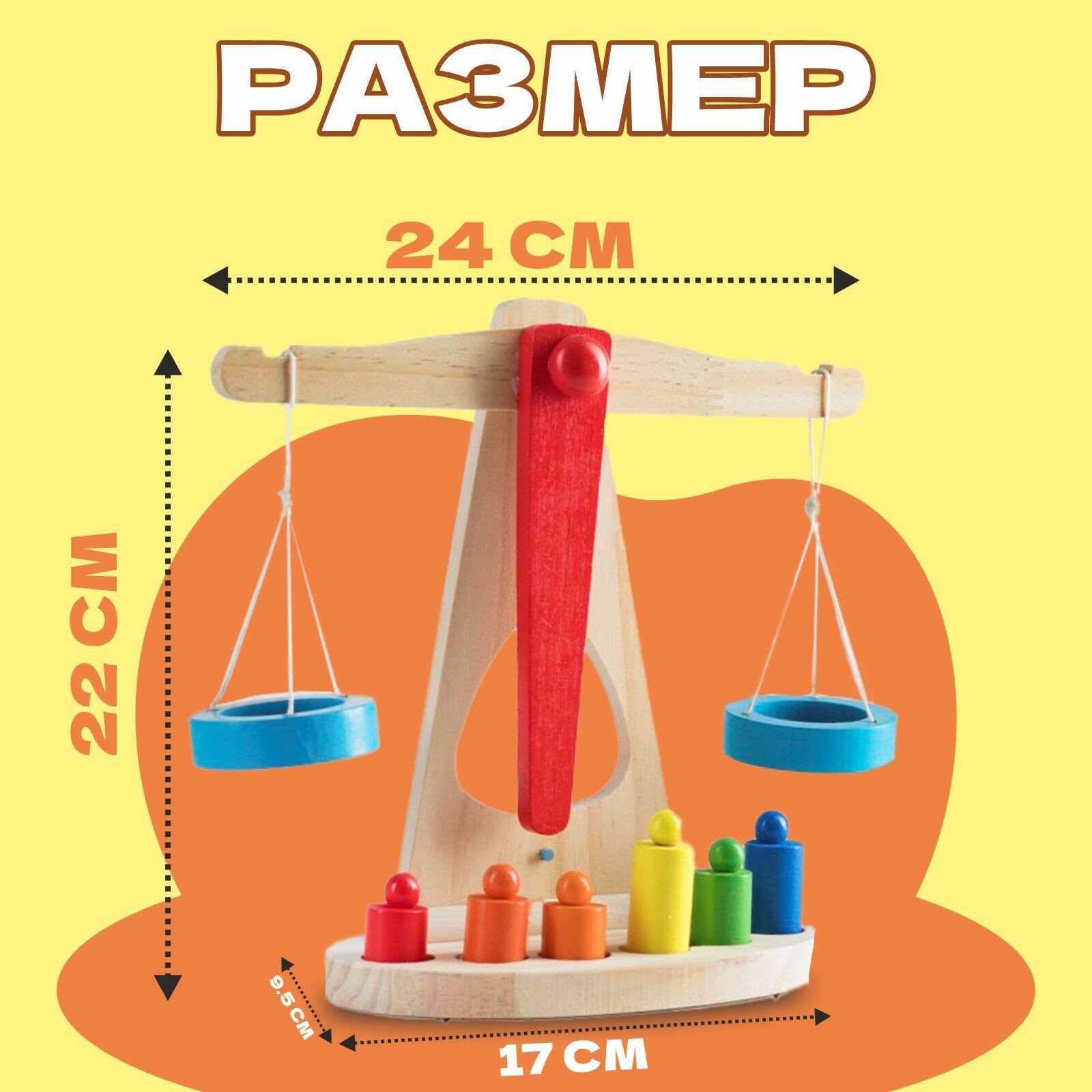 Игрушка ЛАС играс "Весы с гирями", деревянная, от 3 лет, разноцветная информация: