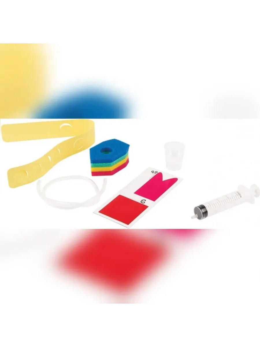 | Комплектация | шприц (2 шт.), пластиковый стаканчик (1 шт.), губка (1 шт.), пластиковая трубка (1 шт.), фиксатор для бутылки (1 шт.), картонные детали для экспериментов, инструкция |