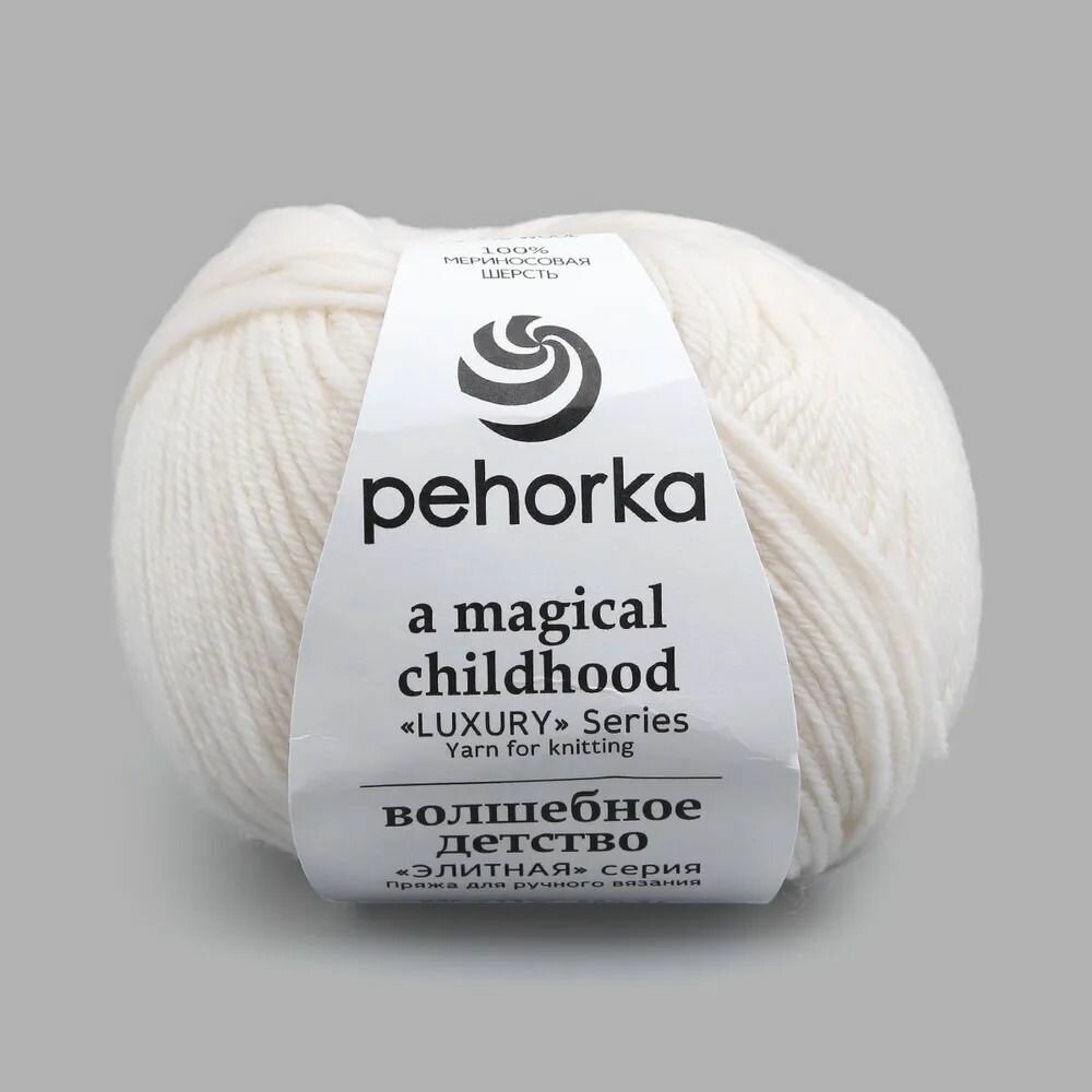 Пряжа Пехорка 'Волшебное детство' 50г, 220м (100% импортная шерсть австралийский меринос) (01 белый), 5 мотков 1 253 ₽