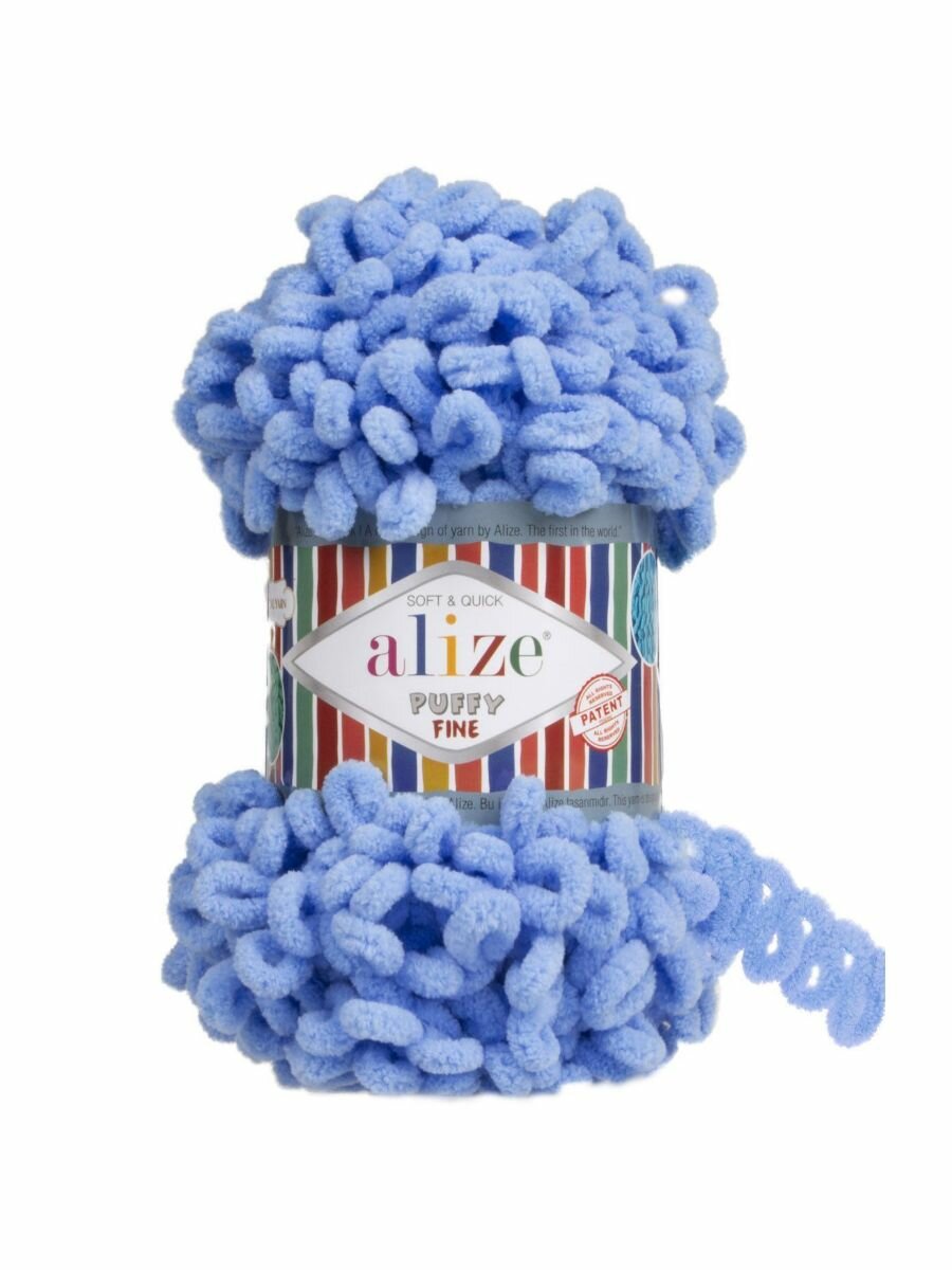 Отзывы на Пряжа для вязания ALIZE Puffy Fine: 112 (голубой,) 3 шт 14.5 м 100 г 100% микрополиэстер. Пряжа Ализе Пуффи Файн с маленькими петлями