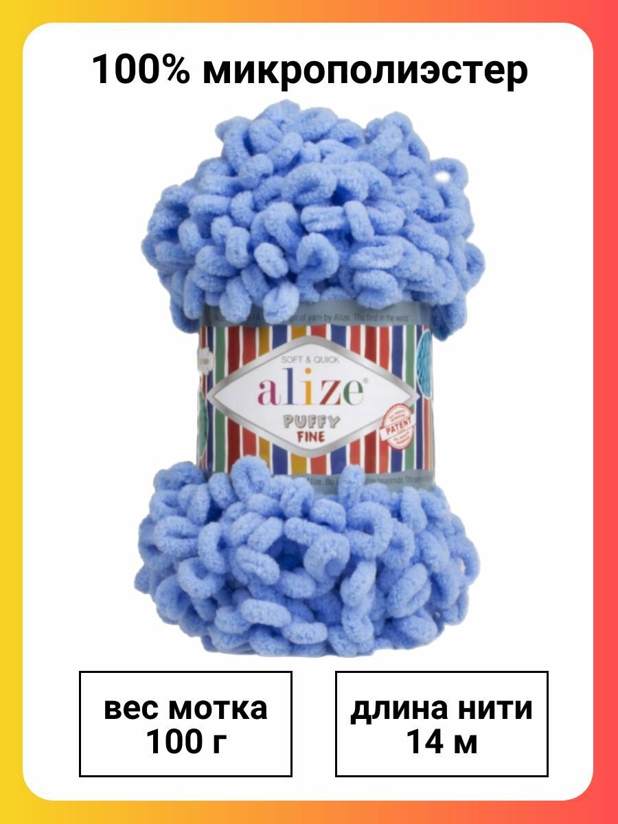 Пряжа для вязания Alize Puffy Fine 112 голубой, 100 г, 14 м, 5 штук информация: