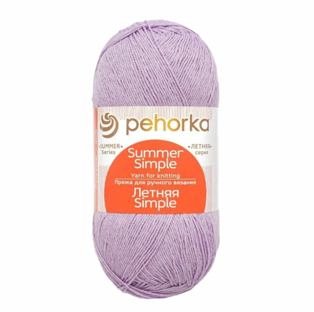 Отзывы на Пряжа Пехорка Летняя Simple Светло-сиреневый (178) 5 мотков 100 г/500 м (60% хлопок, 40% полиэстер) летняя симпл
