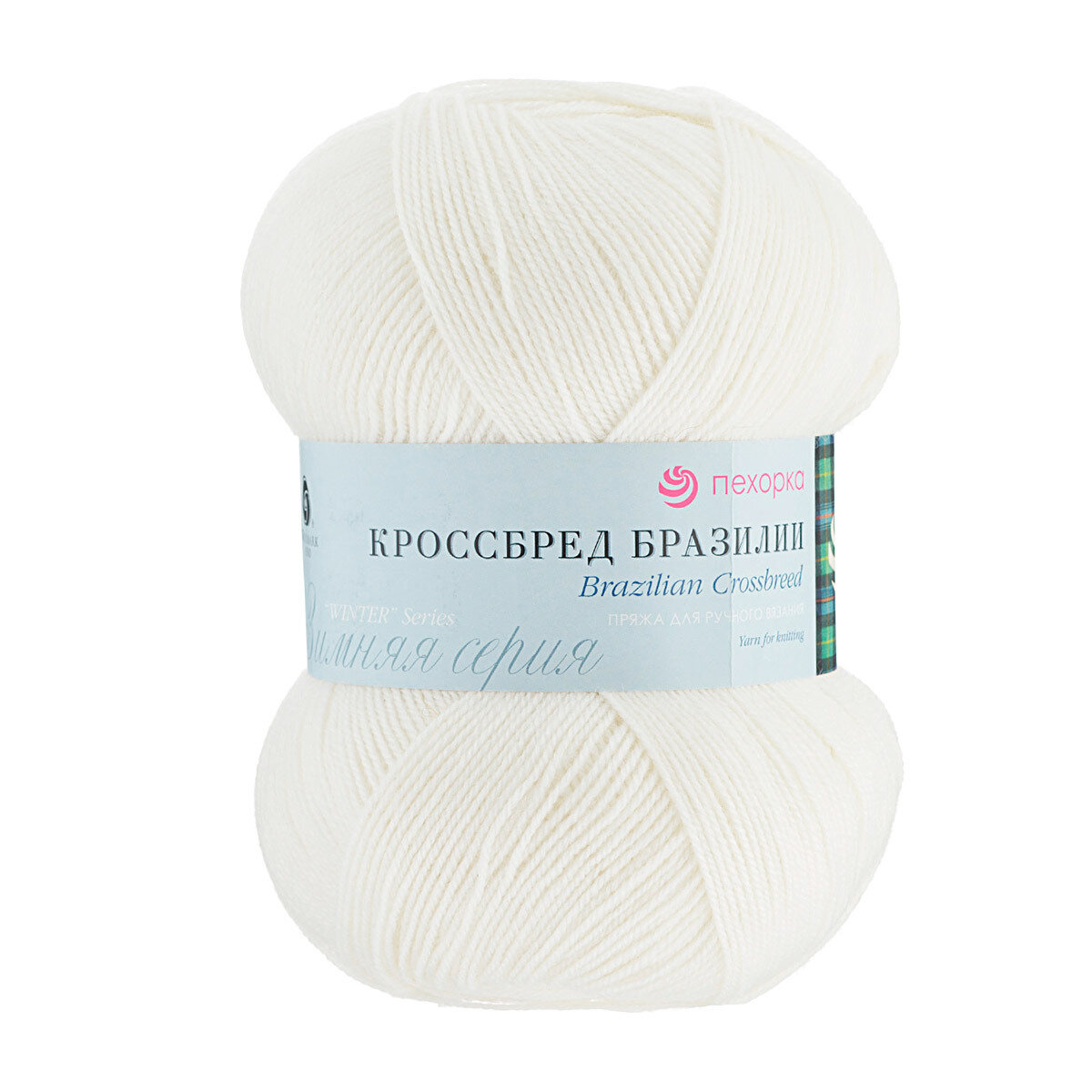 Пряжа Кроссбред Бразилии (Пехорка), Белый - 01, 50% мериносовая шерсть, 50% акрил, 5 мотков, 100 г, 500 м. информация: