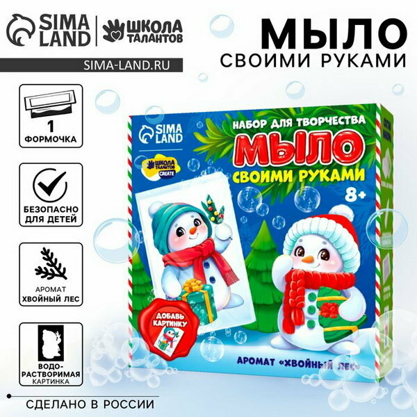 10 цен на Мыло своими руками с картинкой на новый год "Снеговик с ёлкой", набор для творчества