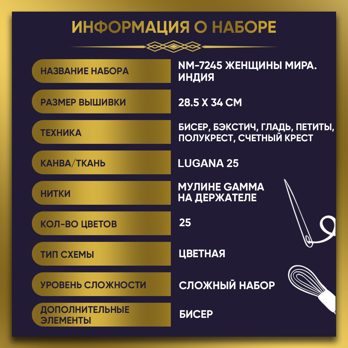 Набор для вышивания PANNA "Золотая серия" NM-7245 "Женщины мира. Индия" информация: