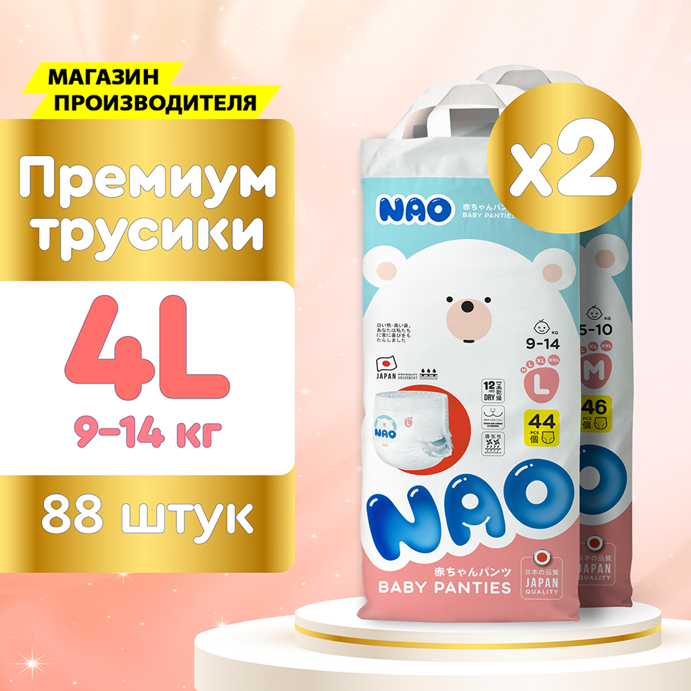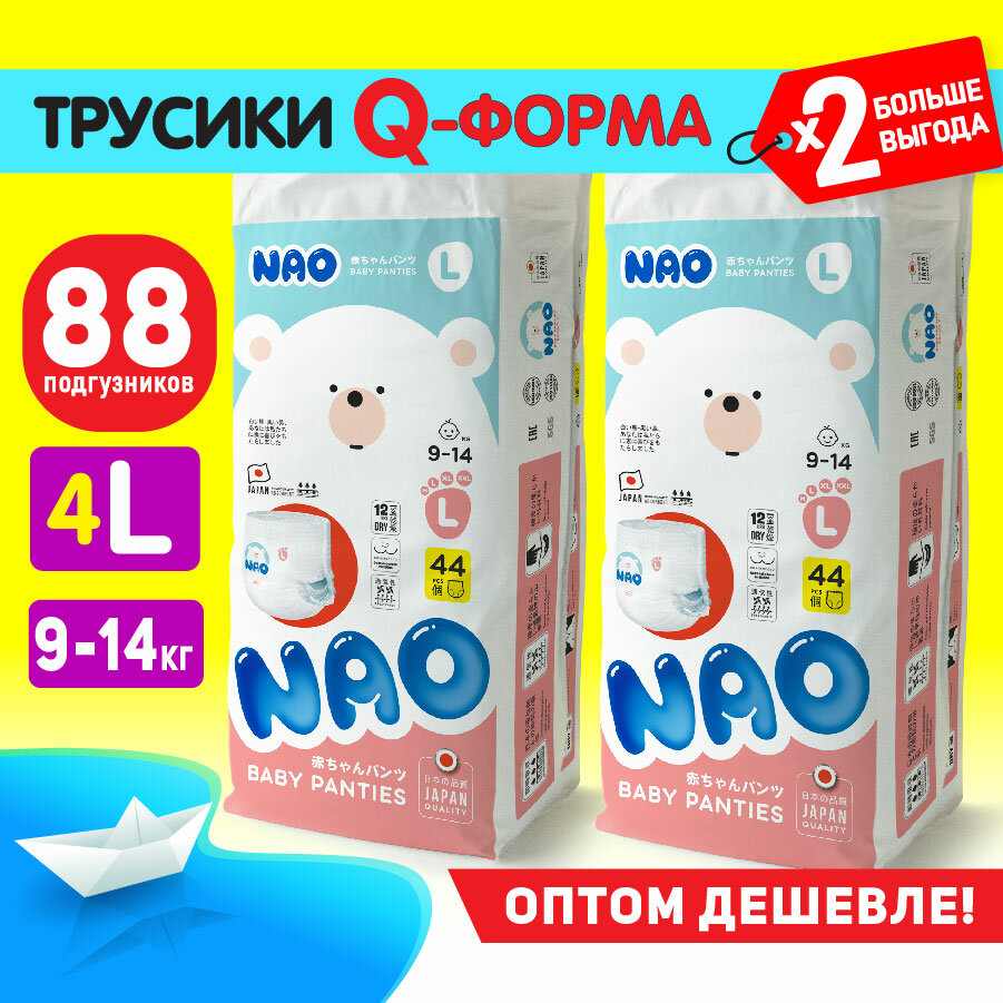 10 цен на Подгузники трусики 4 размер L 9-14 кг детские для мальчиков девочек детей японские памперсы премиум 2 уп по 44 шт / Нао