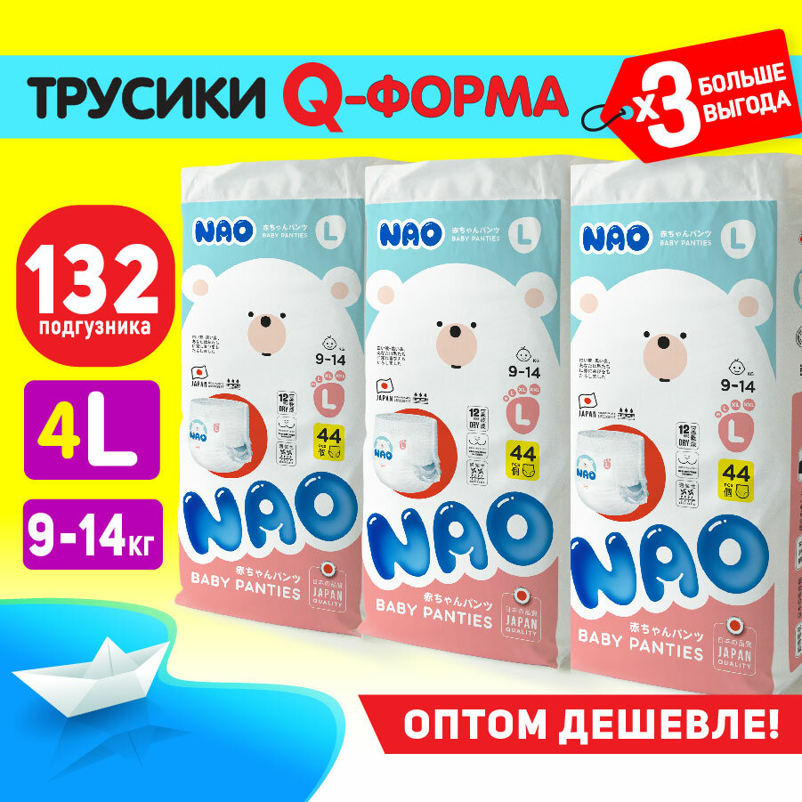 Подгузники трусики 4 размер L детские для мальчиков девочек японские ночные памперсы премиум 3 уп по 44 шт / Нао информация: