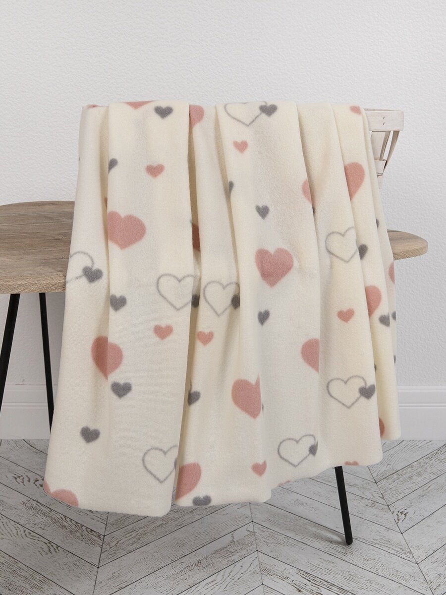 10 цен на Плед для новорожденного 100х118 флисовый детский в кроватку коляску, Tessolo Home, "Валентинки", молочный с сердечками