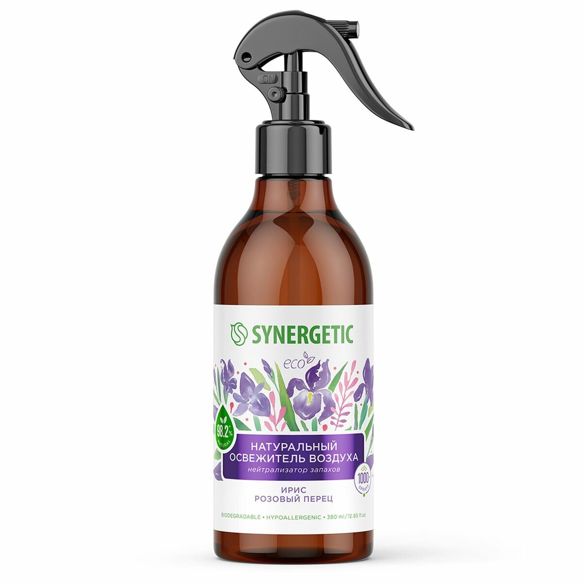 Ароматический гипоаллергенный освежитель воздуха SYNERGETIC "Ирис и розовый перец" 380мл, натуральный нейтрализатор запахов