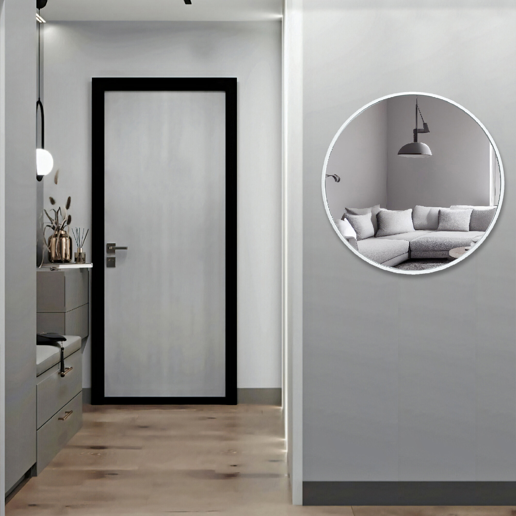Зеркало Postermarket "Рей", круглое, настенное, в раме, цвет : белый, 70х70 см