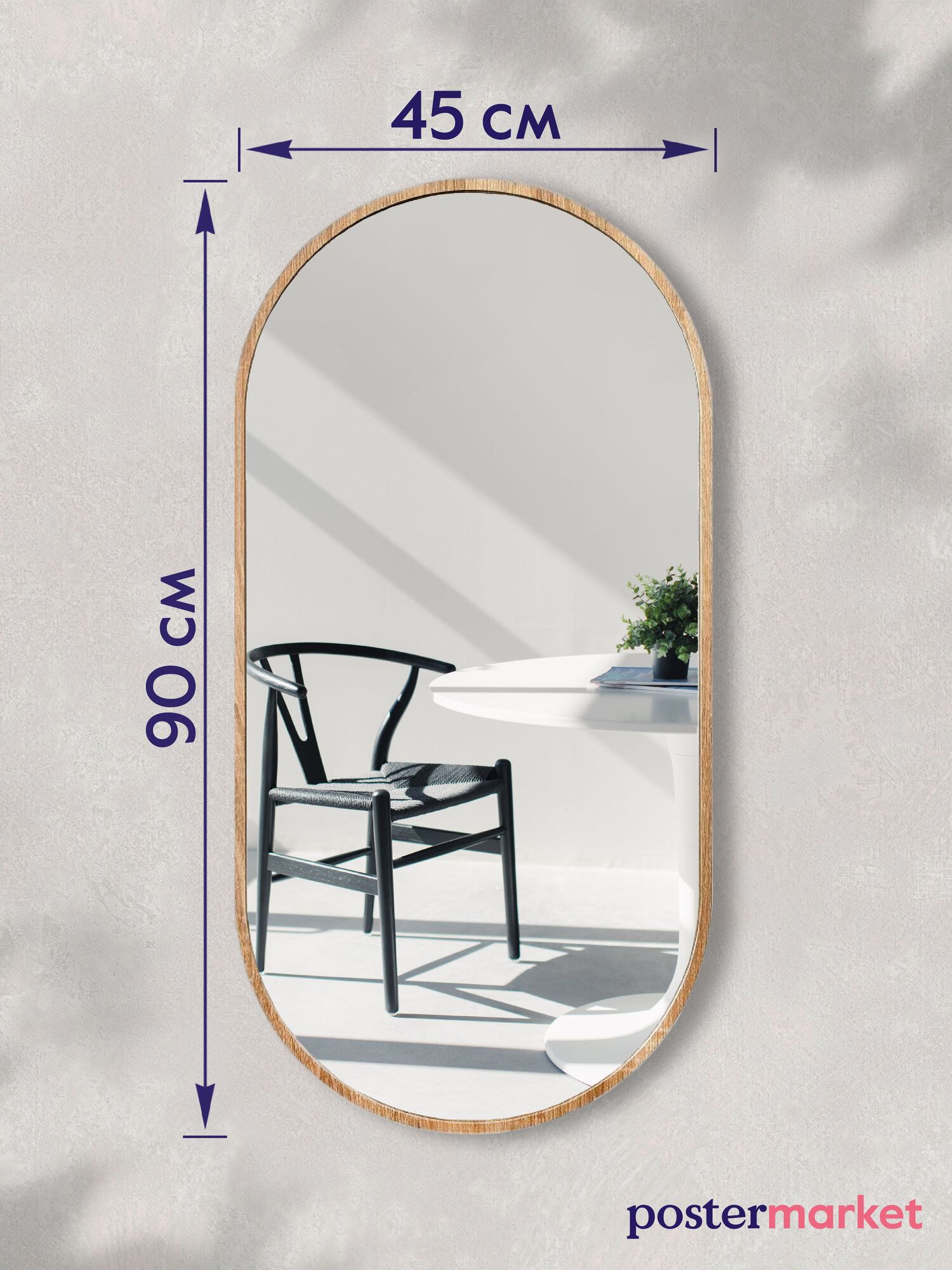 Отзывы на Зеркало Postermarket "Капсула" овальное, настенное, 45х90 см, в раме, цвет: дуб сонома