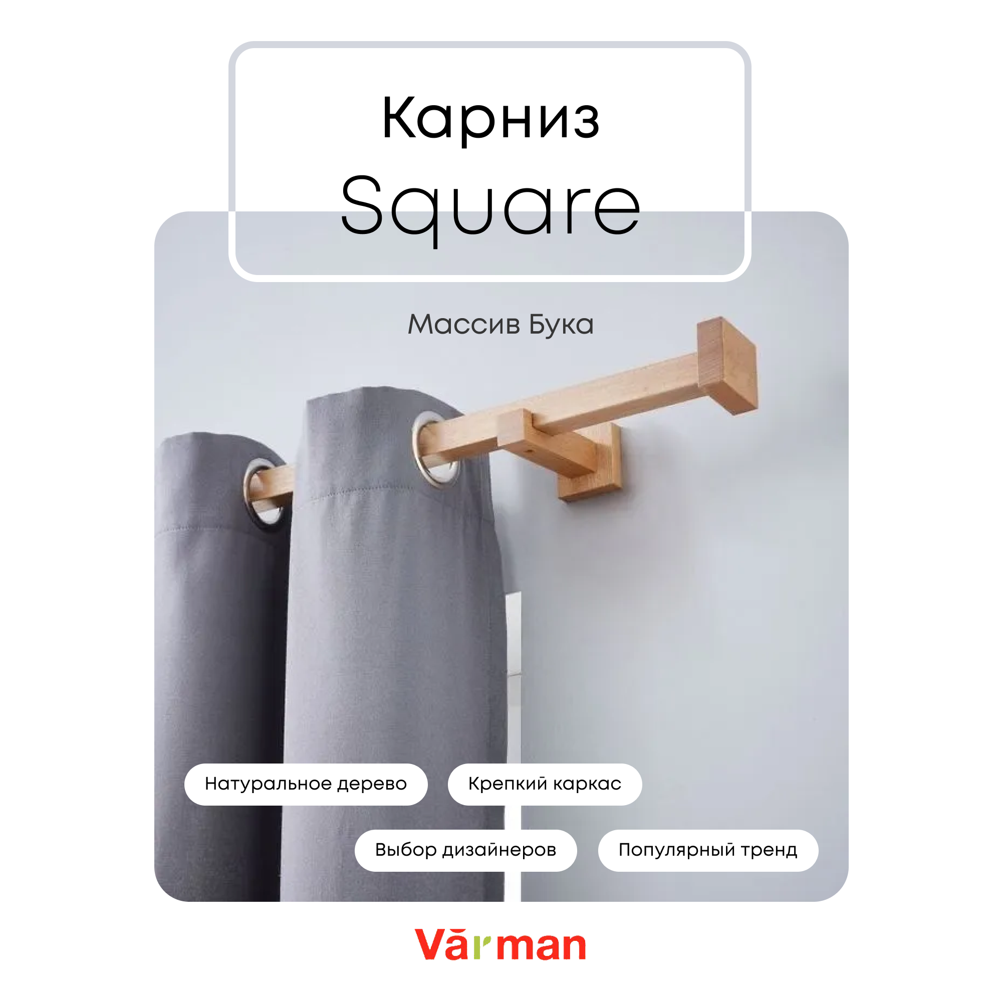 Отзывы на Карниз для штор деревянный однорядный Square квадратный, 3000 мм, цвет натуральный, Varman.pro