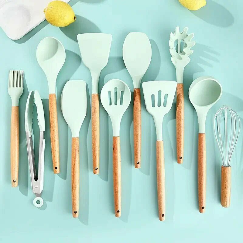 Отзывы на Набор кухонных принадлежностей из бука и силикона на подставке , 12 предметов