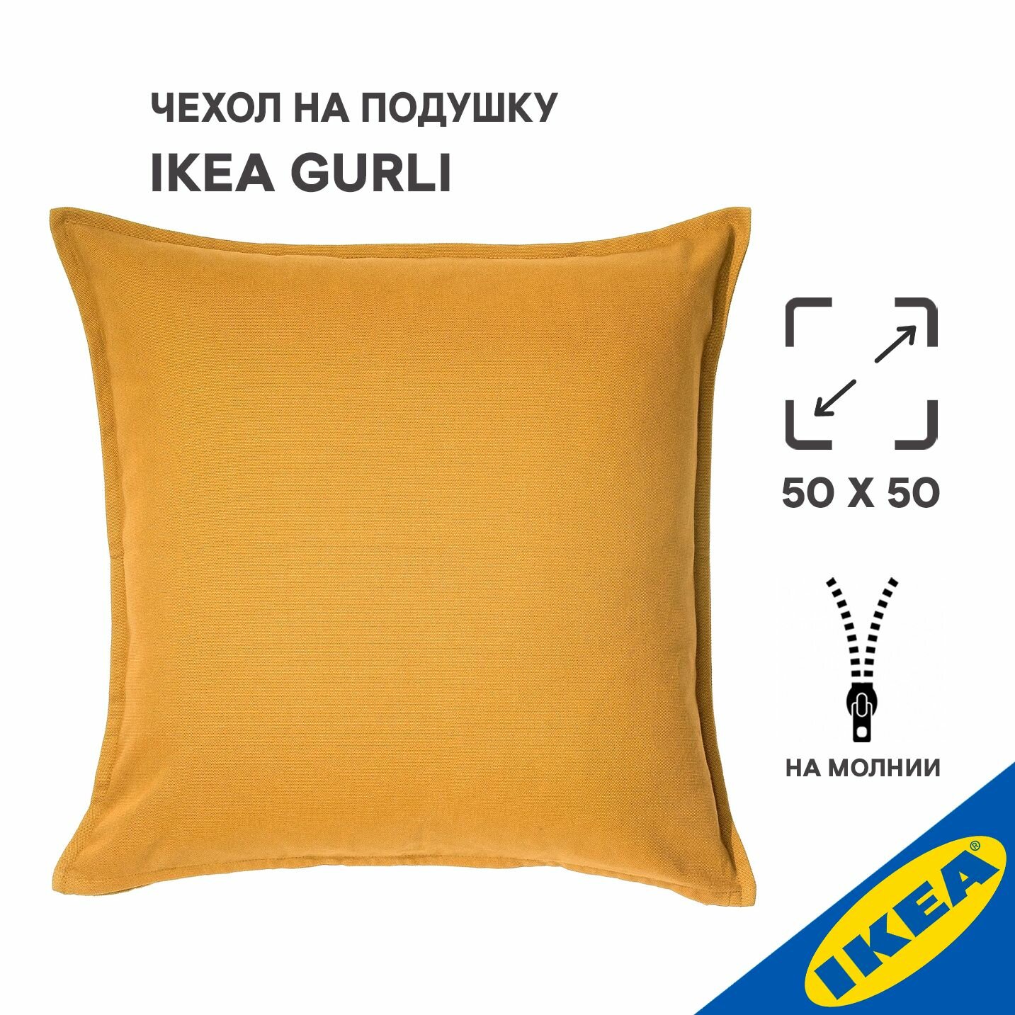 Чехол на подушку 50x50 см золотисто-желтый IKEA GURLI гурли информация: