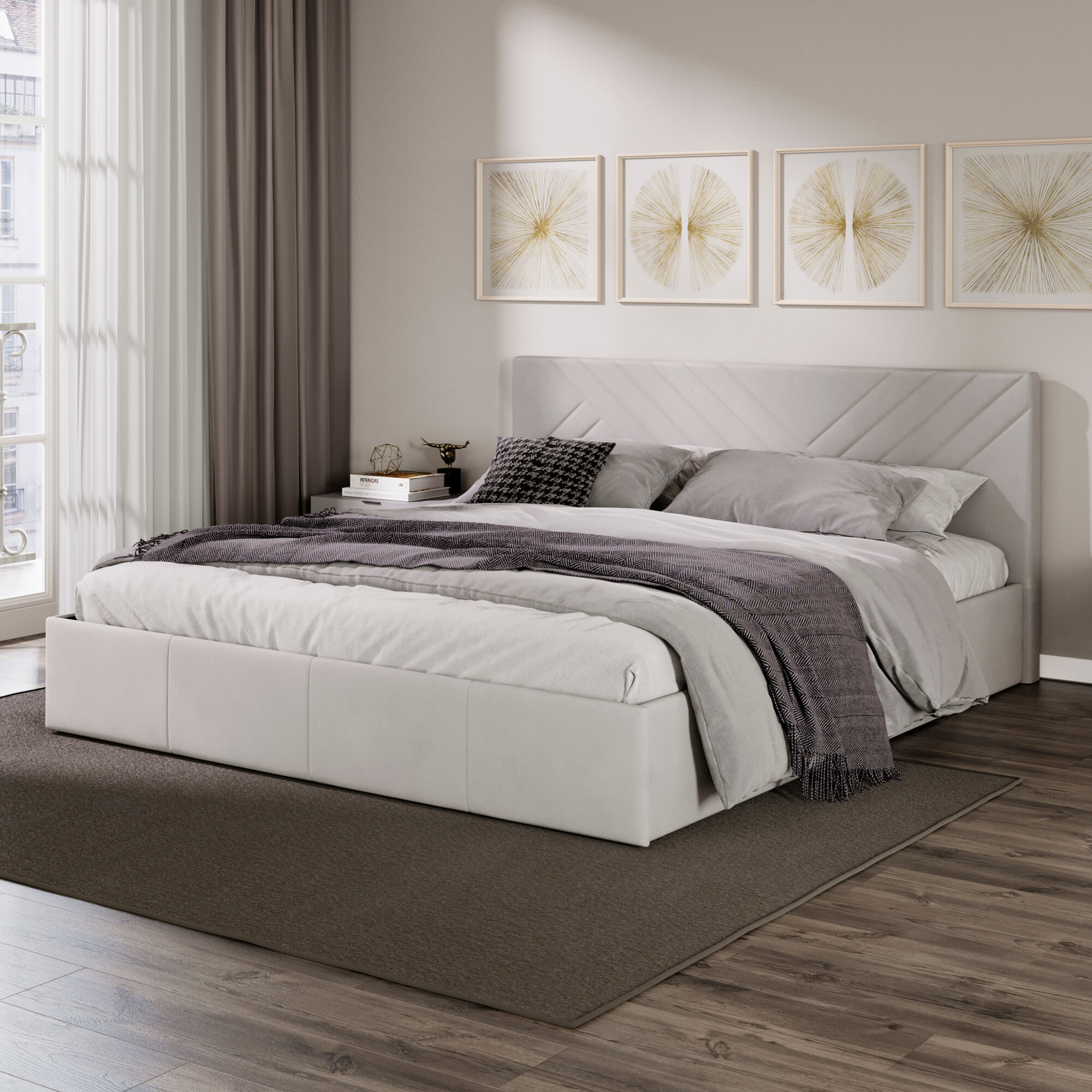 10 цен на Кровать двуспальная FRENT 180х200 с подъемным механизмом, Дэлли, Велюр Confetti Silver