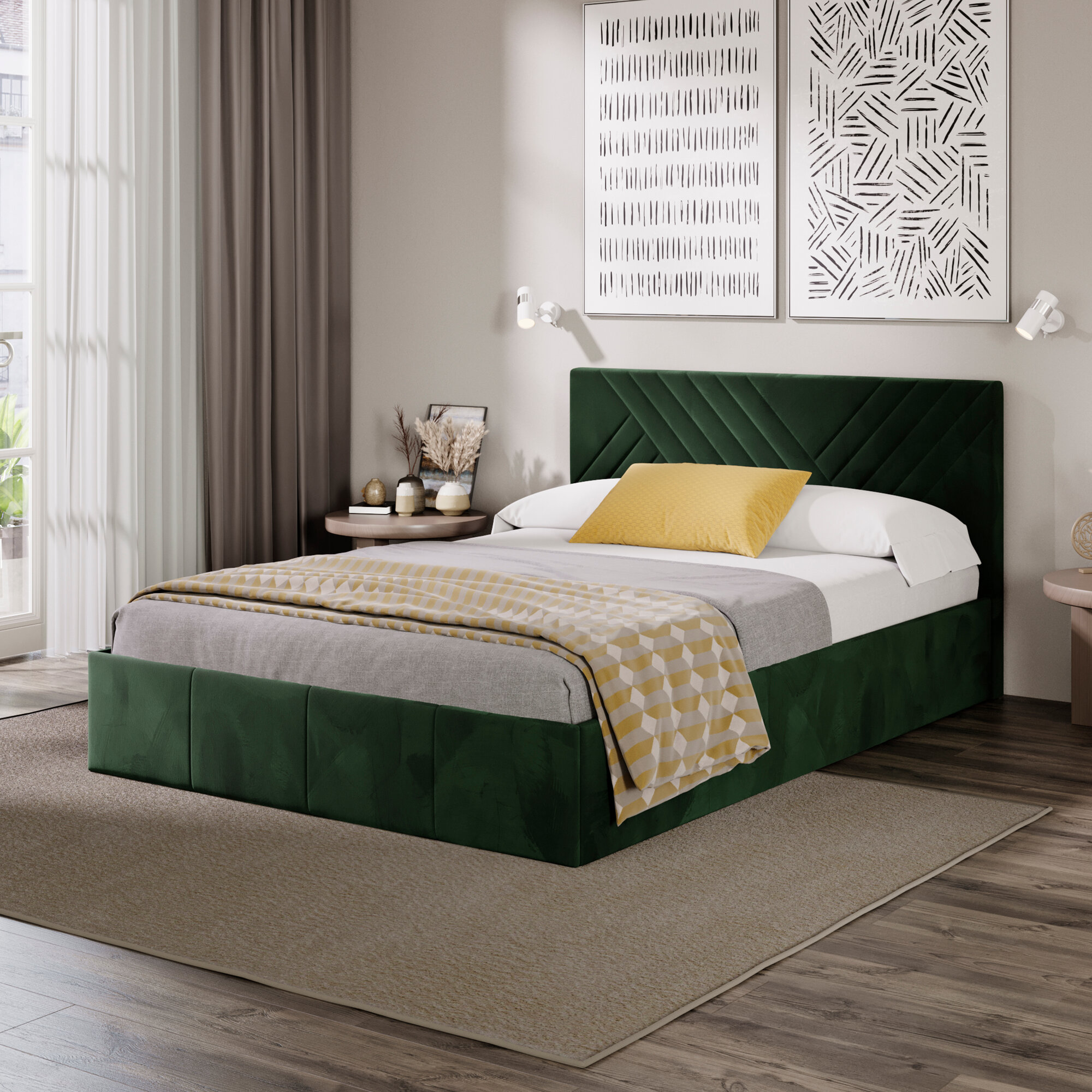 10 цен на Кровать двуспальная FRENT 140х200 с подъемным механизмом, Дэлли, Велюр Confetti Deep forest