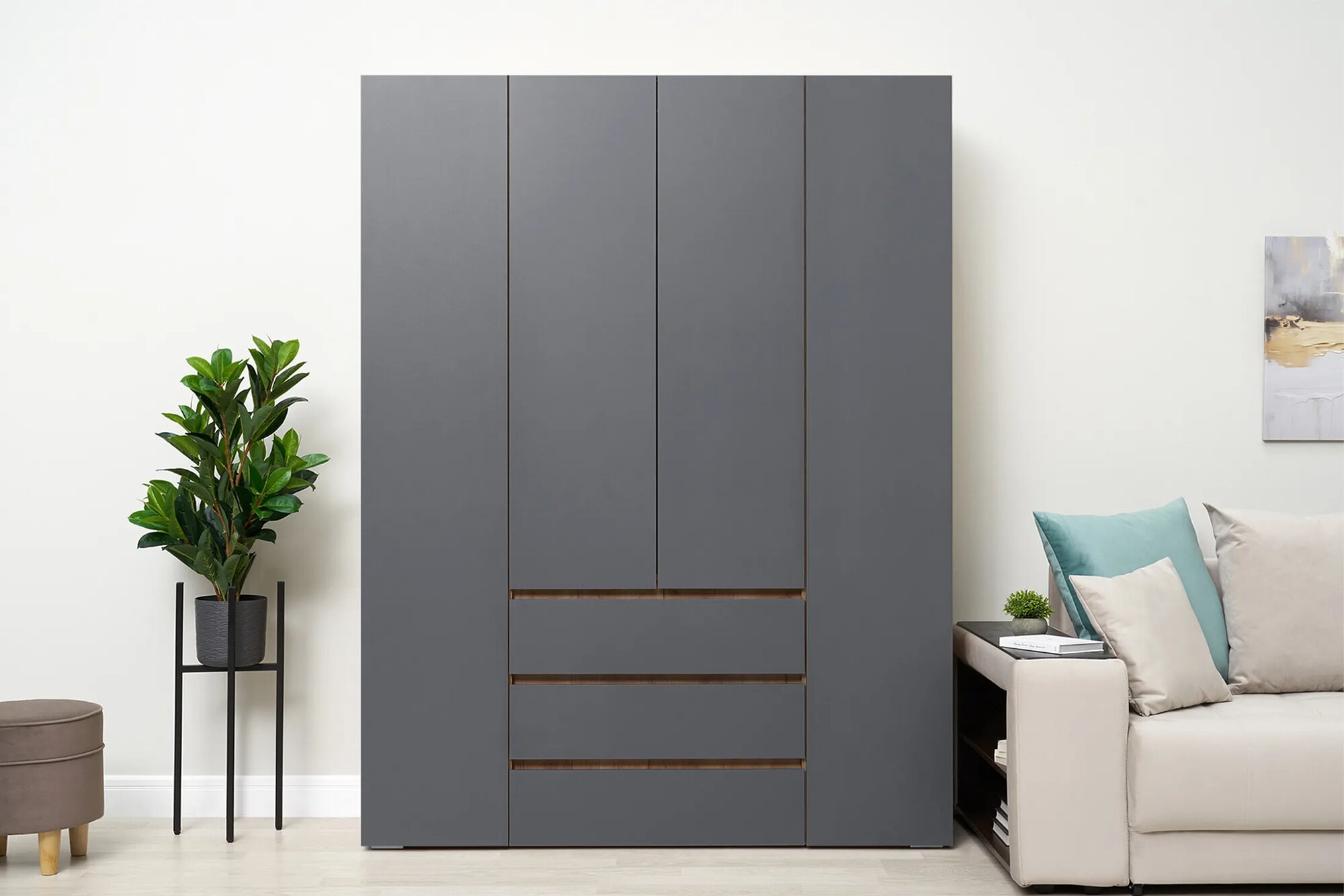 Шкаф 4-створчатый с ящиками "Хелен ШК 05", 160 x 46 x 208см, ЛДСП, серый графит 19 434 ₽