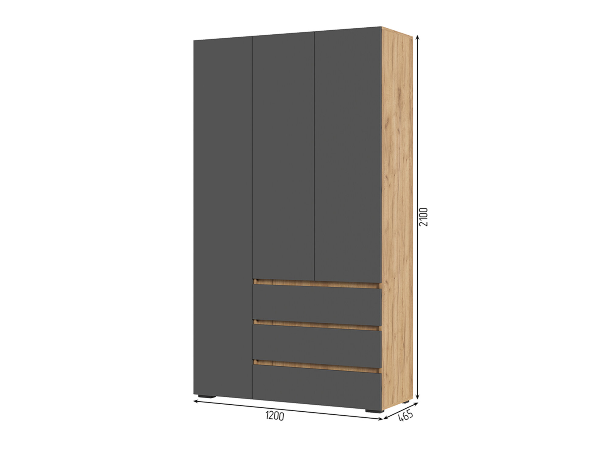 Шкаф 3-х створчатый «Хелен» ШК 06, серый графит/дуб крафт золото (1200х465х2100) 14 056 ₽