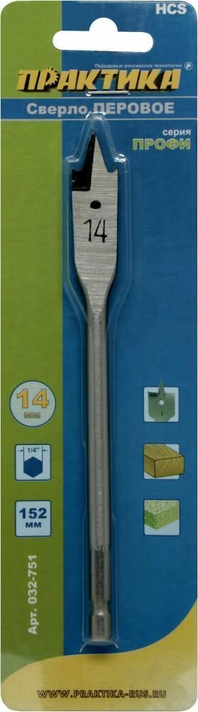 Сверло по дереву перовое ПРАКТИКА 14 х 152 мм (1шт.), шестигранник информация: