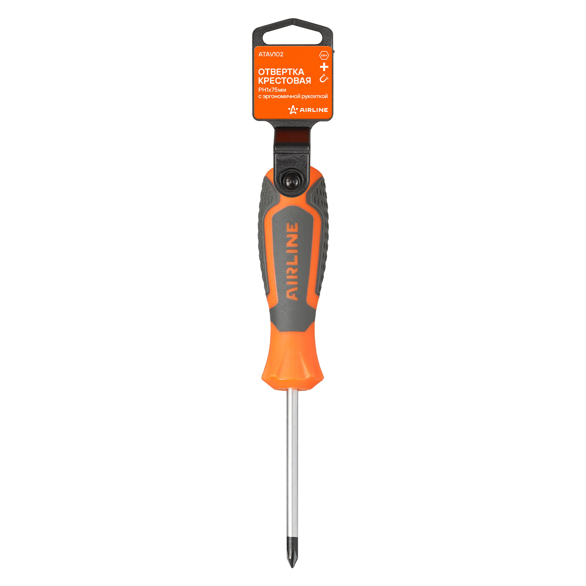 Отвертка крестовая PH1x75мм, магнитный наконечник, пласт. подвес ATAV102 AIRLINE информация: