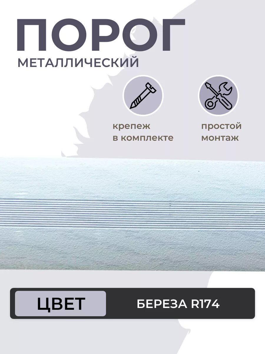 Порог одноуровневый лука ПС 01 1800. R174 береза алюминий 1800х25 мм 499 ₽