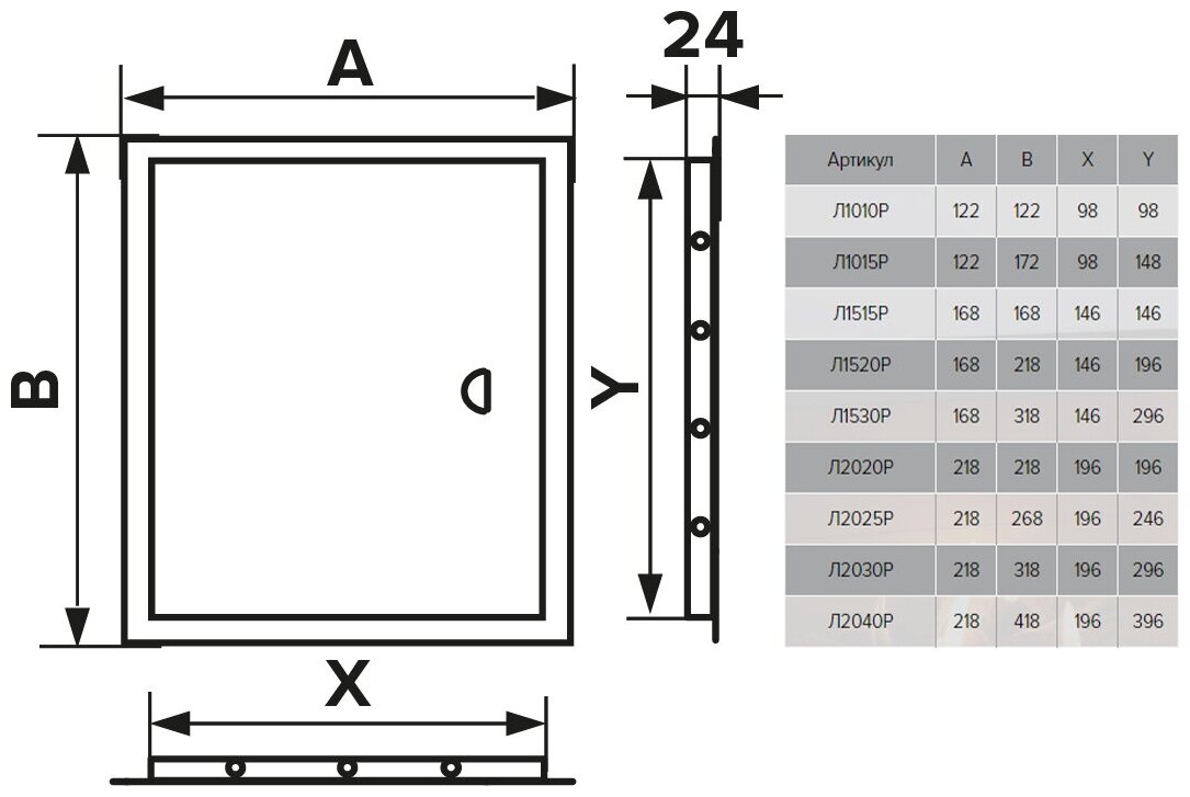 Л1010Р, Люк-дверца ревизионный 122х122 с фланцем 98х98 с ручкой информация: