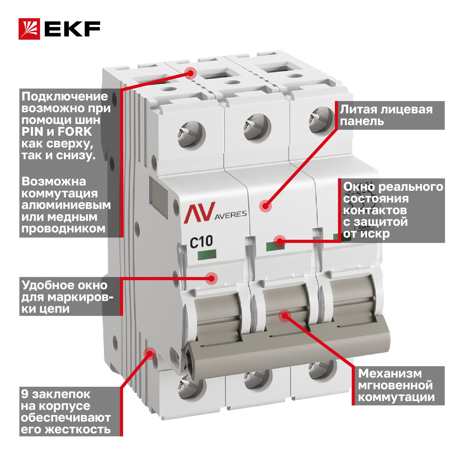 Выключатель автоматический EKF AVERES AV-10 3P 10A (C) 10kA - 1 шт. информация: