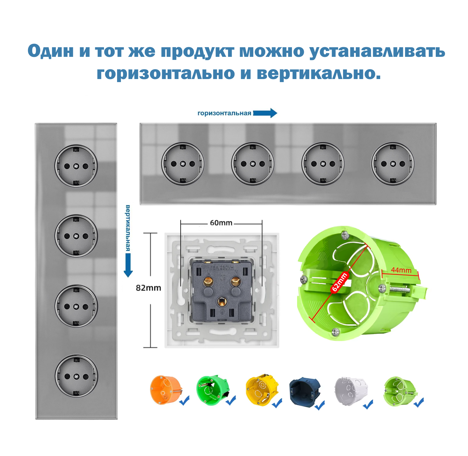 Отзывы на Розетка электрическая 4 поста 16А, рамка 295*82*8mm. рамка стекло сплошное, цвет серый. F8