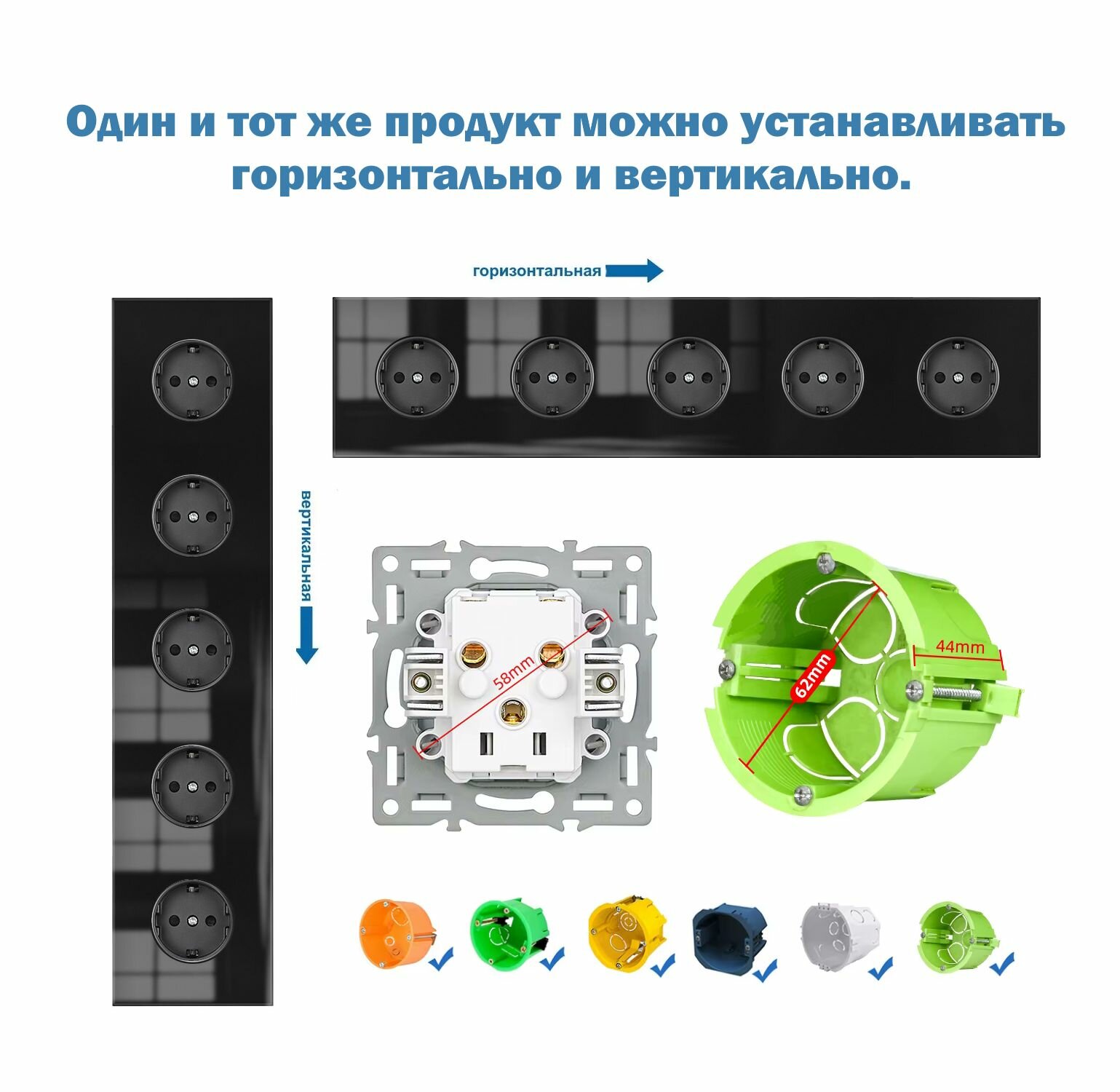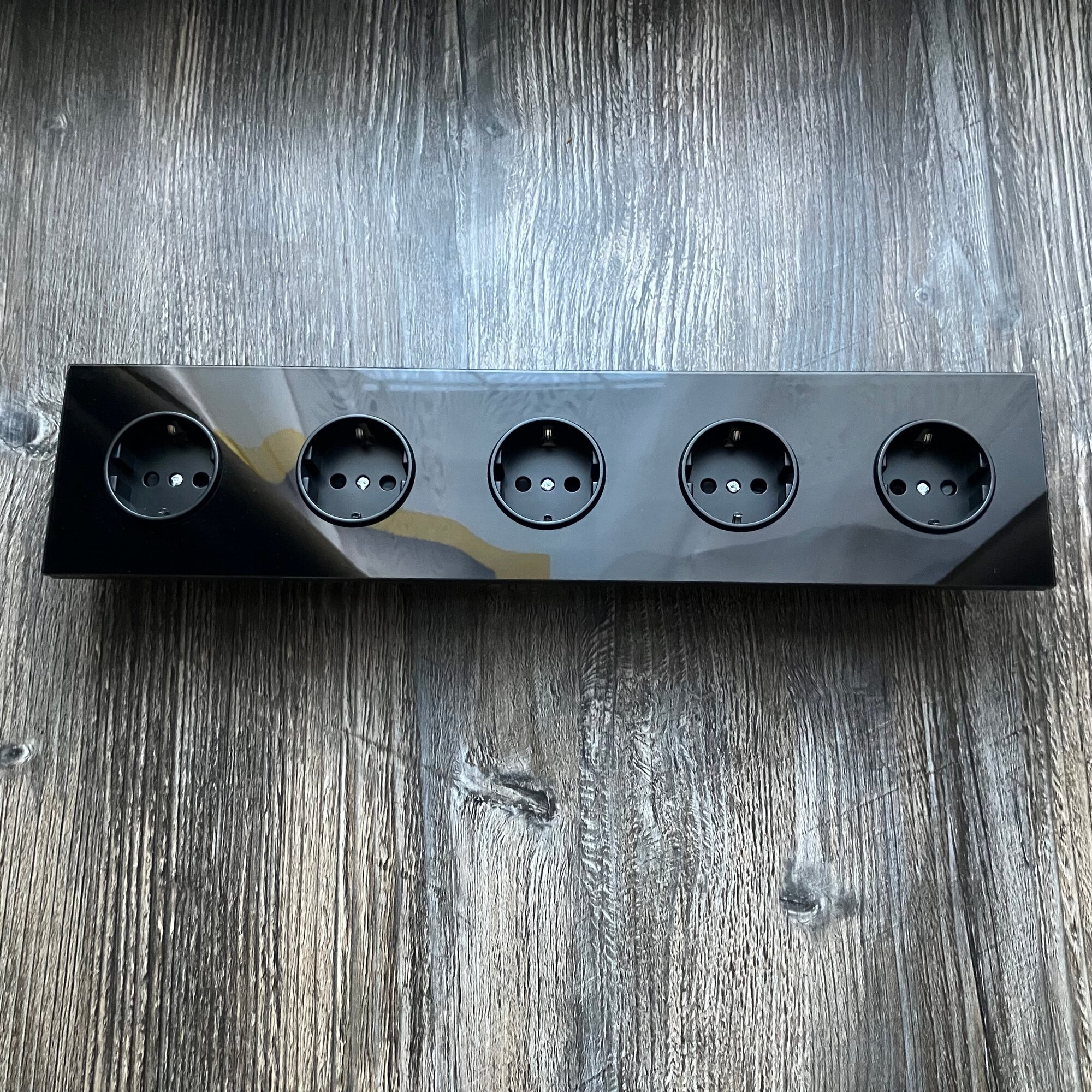 Отзывы на Розетка электрическая 5 постов 16А, рамка 366*82*8mm. рамка стекло сплошное, цвет чёрный. F8