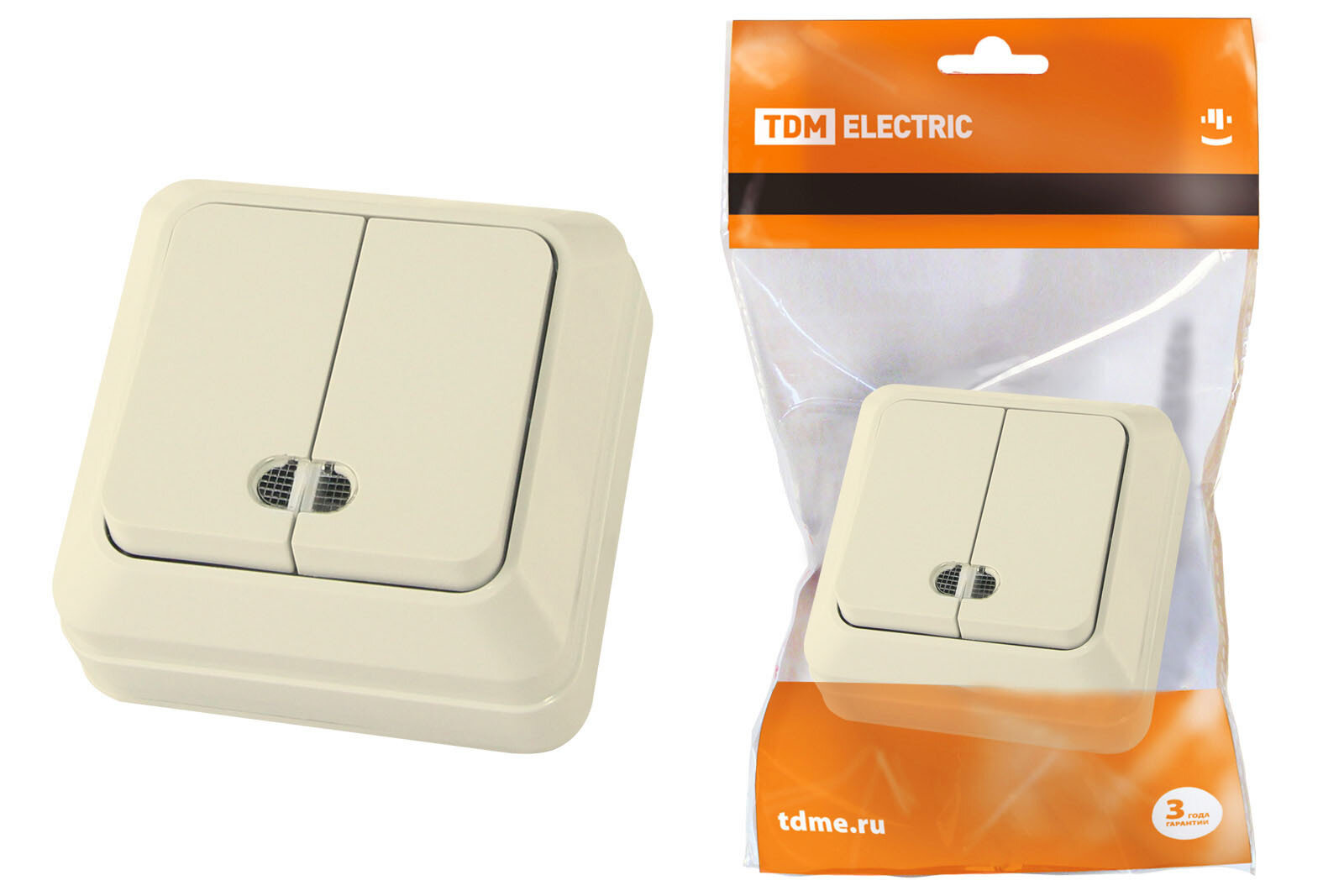 Отзывы на Выключатель двухклавишный открытой установки с подсветкой слоновая кость, 10 А, Ладога