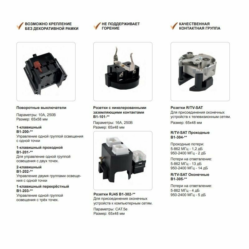| Комплектация | декоративная рамка / механизм с накладкой / рамка для наруж. монтажа |