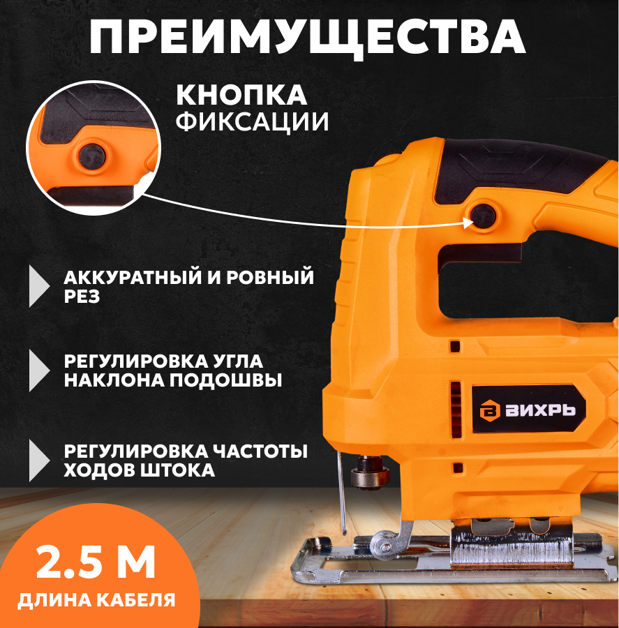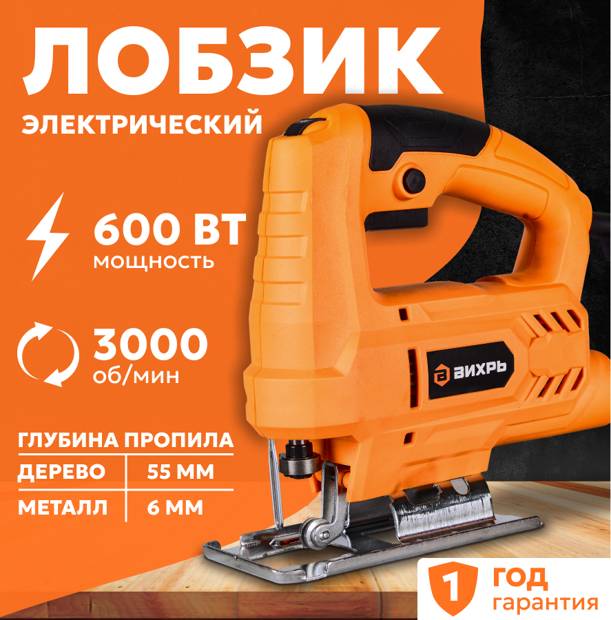 Лобзик Вихрь ЛЭ-6555, от сети, мощность 600Вт, глубина пропила 55мм информация: