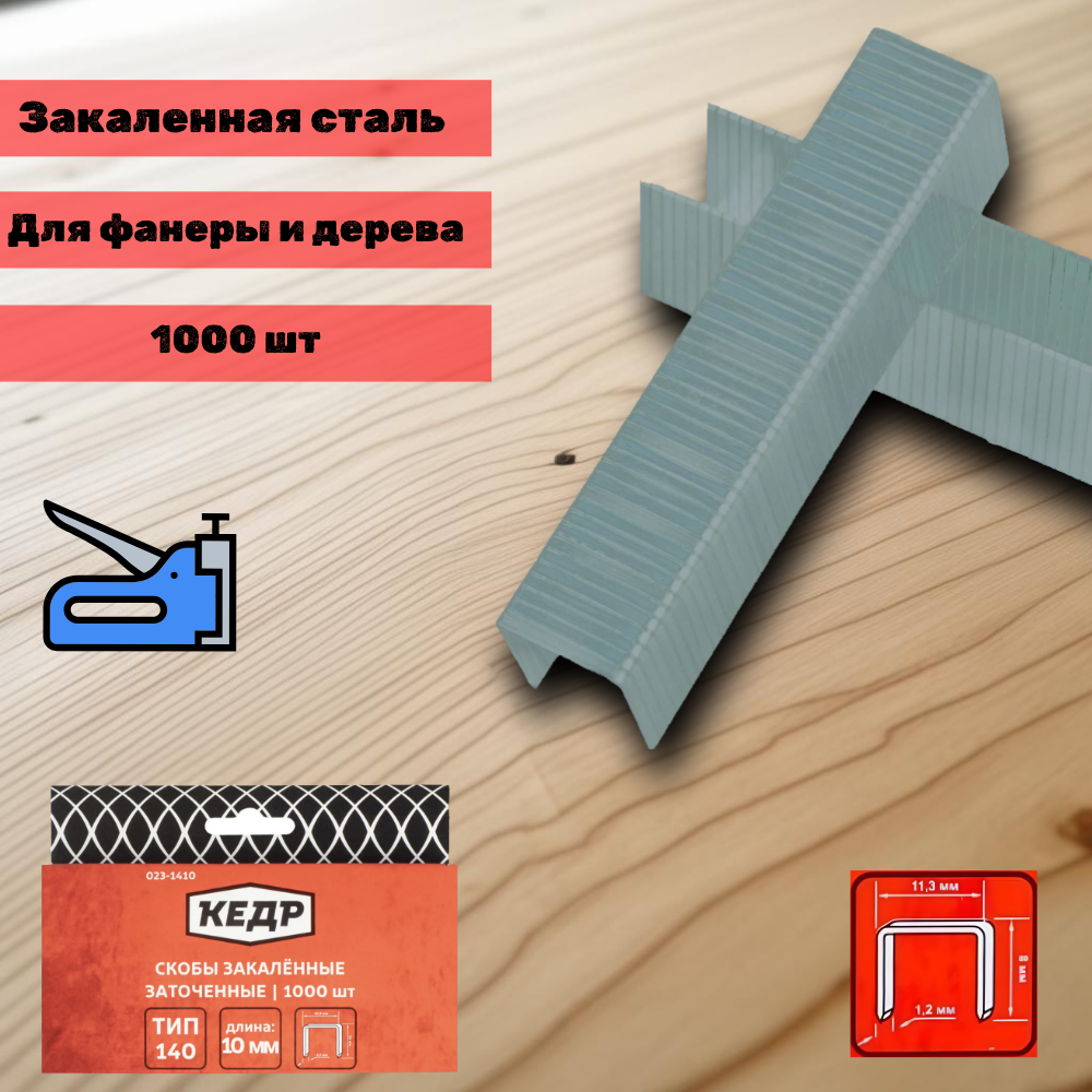 10 цен на Скобы закалённые КЕДР тип 140, толщина 1.2мм, длинна 10 мм, 1000 шт